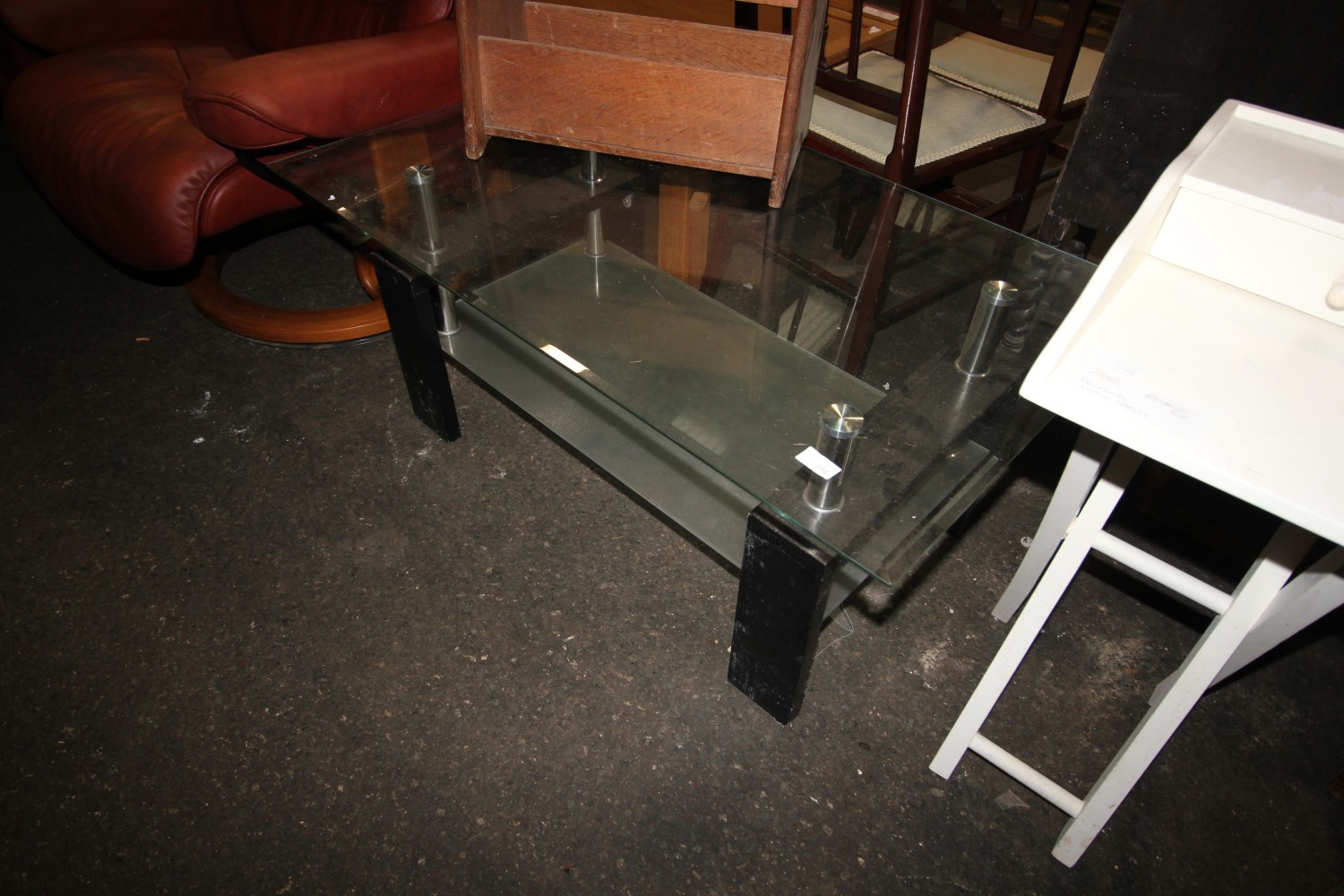 2 tier glass coffee table plus wooden magazine rack