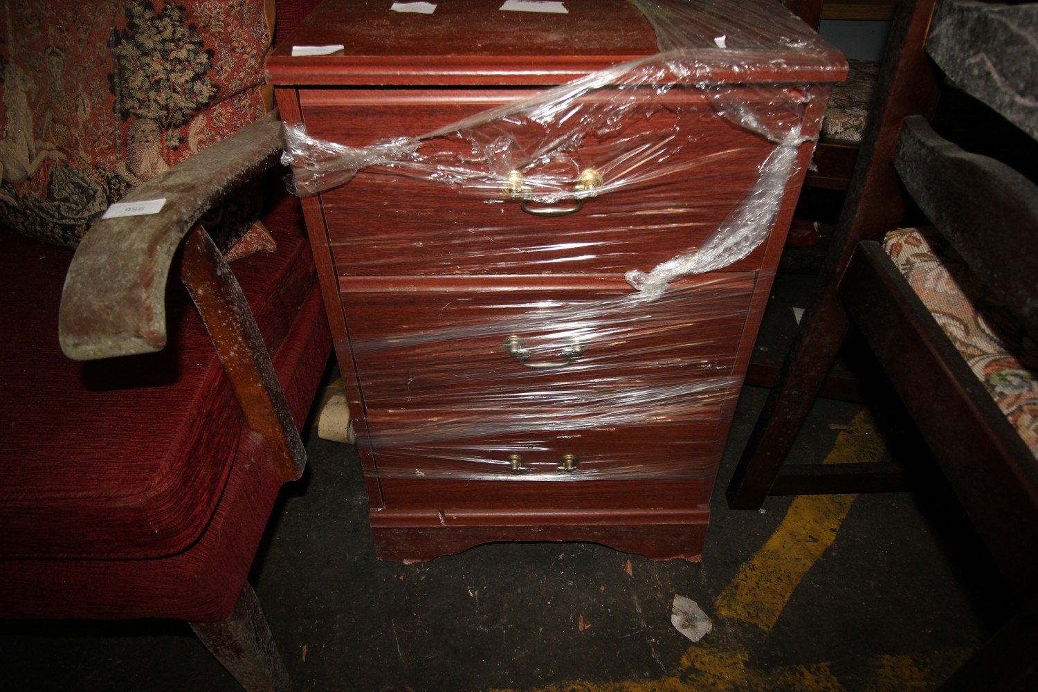 a mahogany mag rack with a 3 drawer bedside cabinet