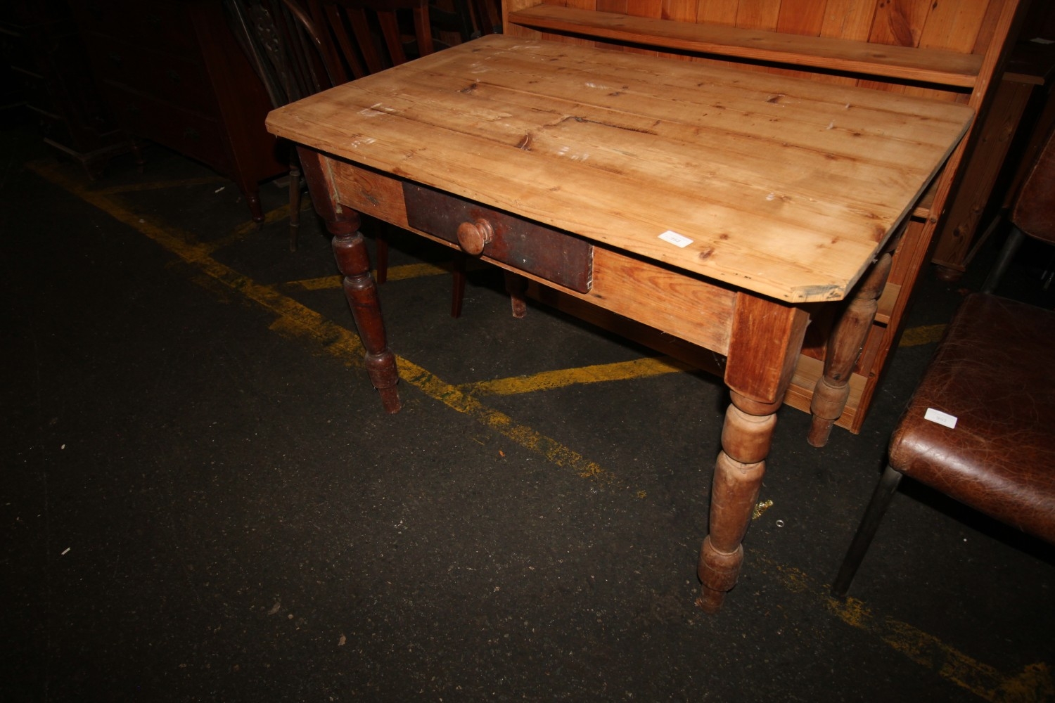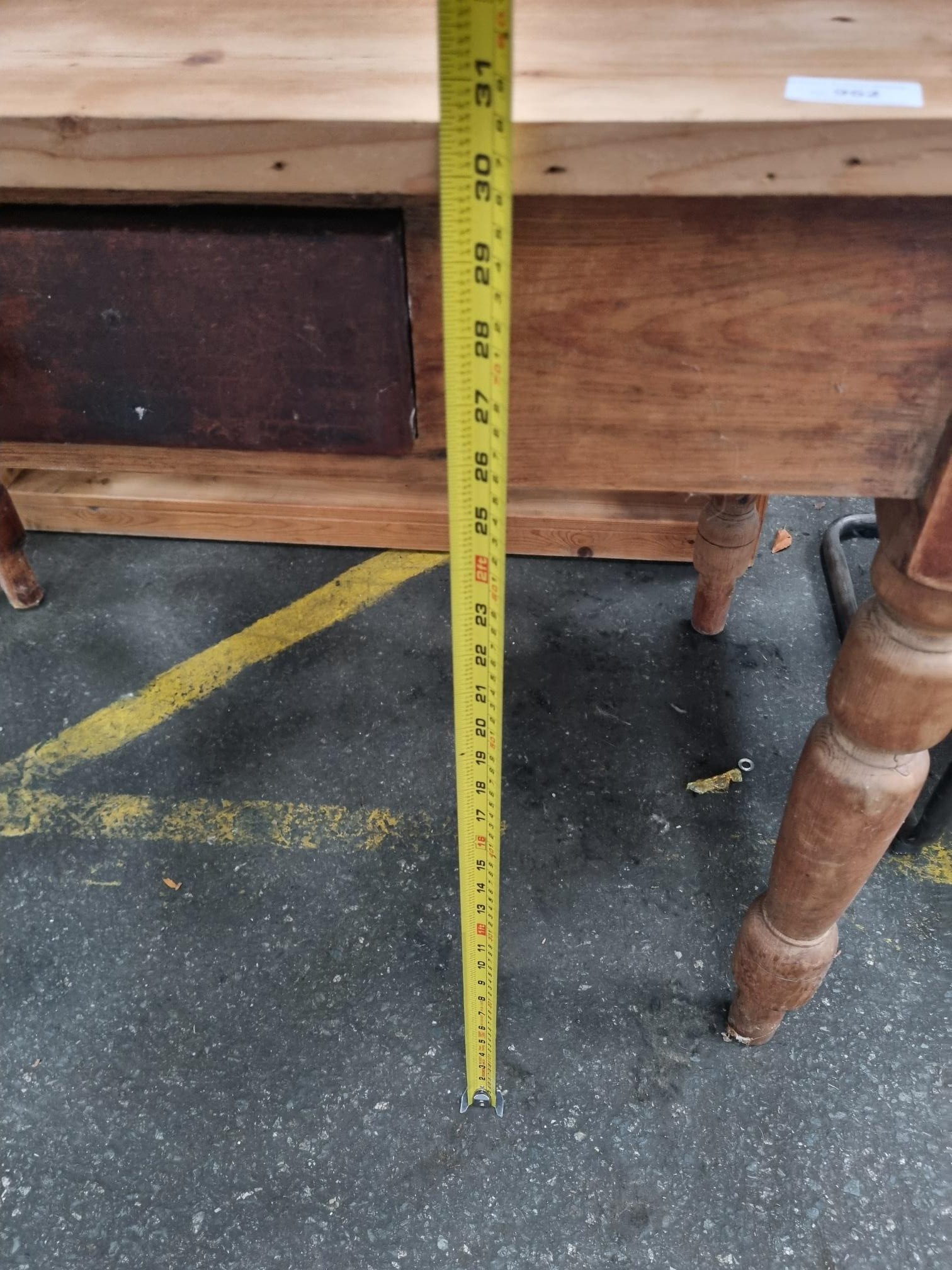 solid pine dining table with cutlery drawer including EPNS cutlery – measures 107cm long by 68cm wide by 78cm tall approx.