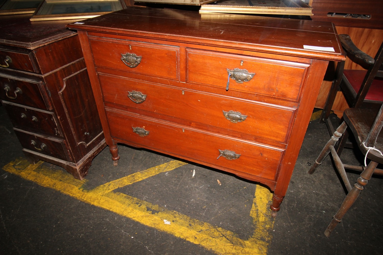 edwardian two over two walnut chest of drawers.