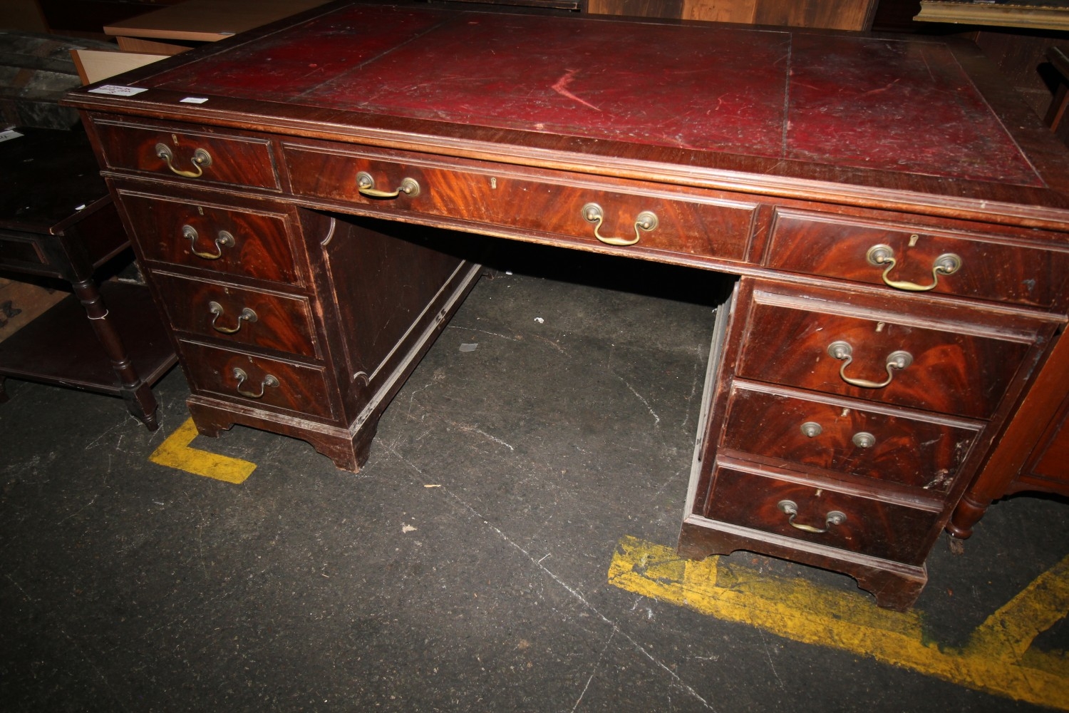 Lot 964: 9 drawer repro mahogany desk