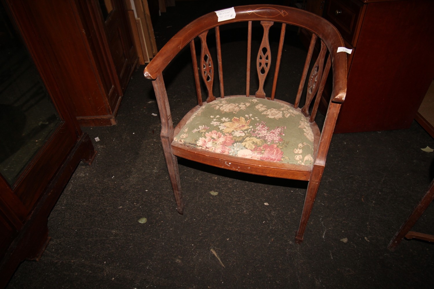 Lot 978: An inlaid Edwardian tub chair with upholstered seat