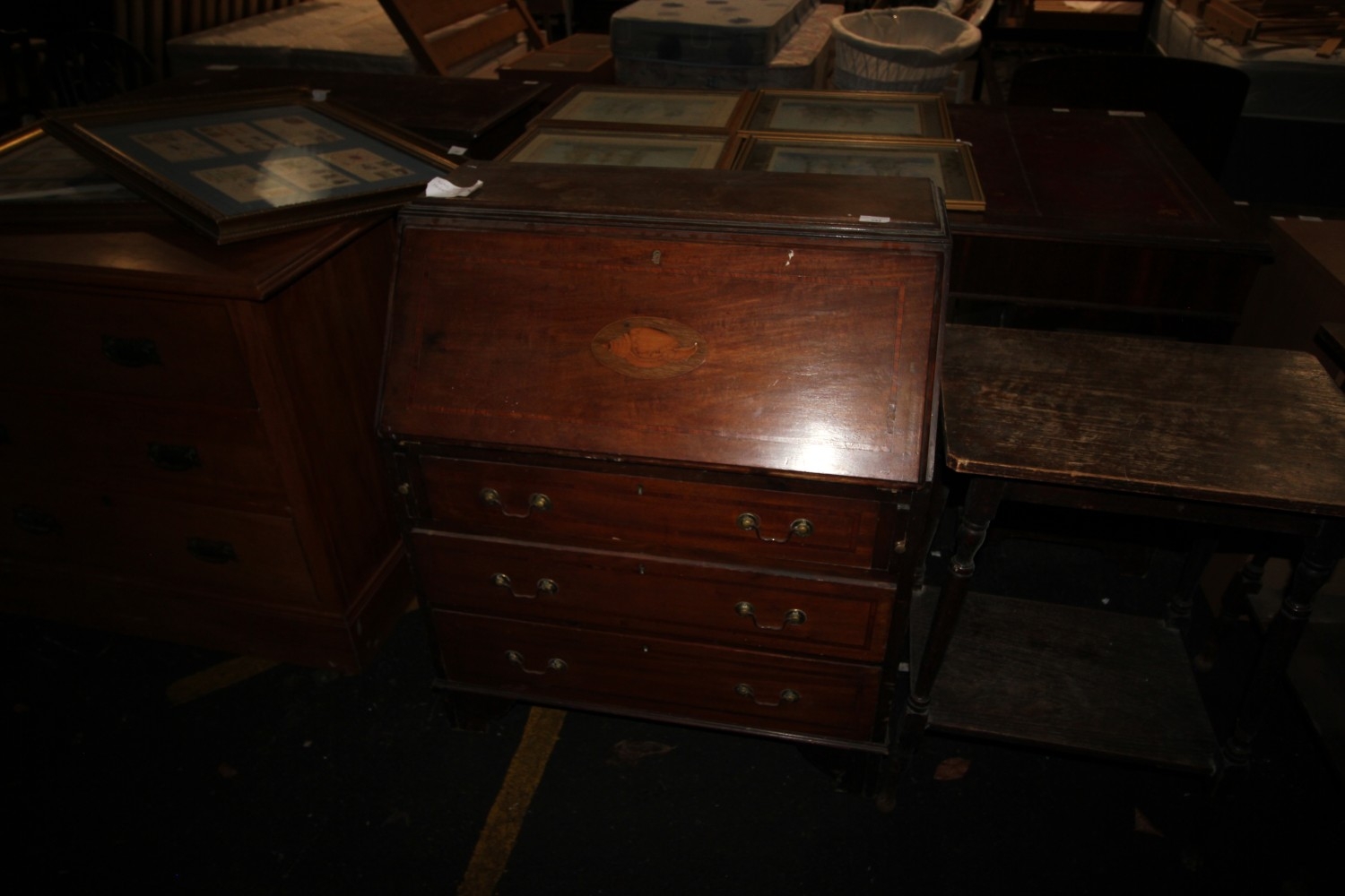 Lot 982: Edwardian mahogany bureau with beautiful conch shell inlay