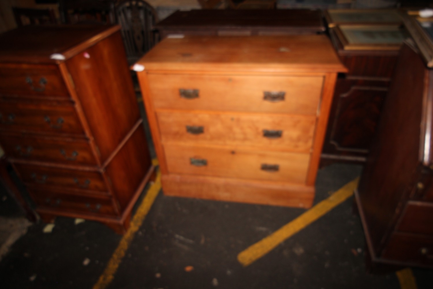 Lot 984: Vintage dovetailed three-drawer chest with brass fitments, in...