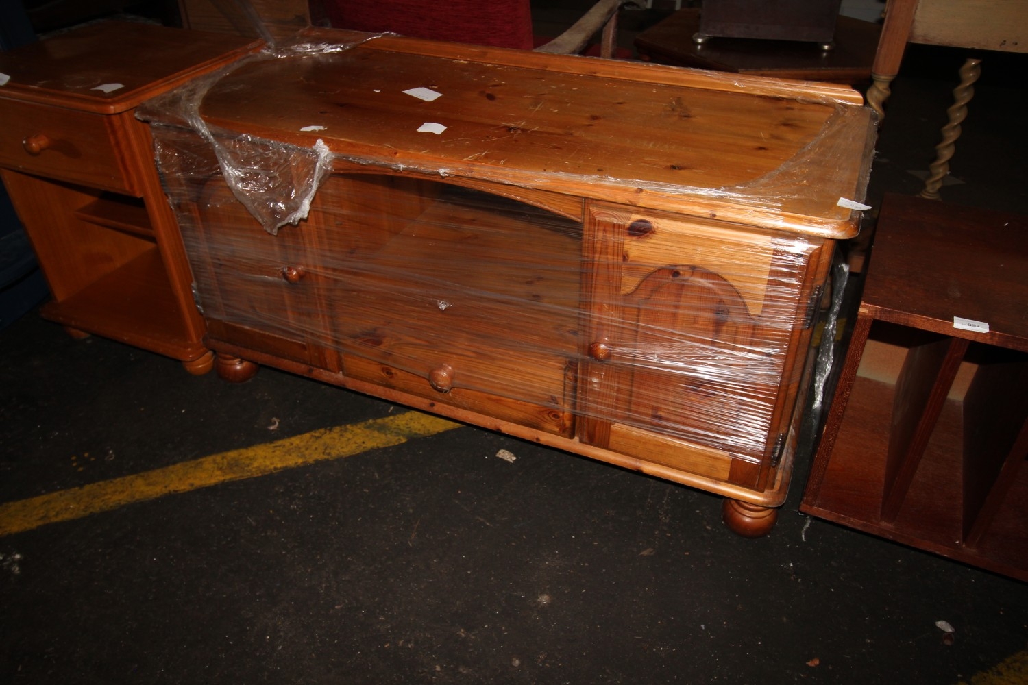 Lot 994: Solid pine one drawer two door entertainment unit...