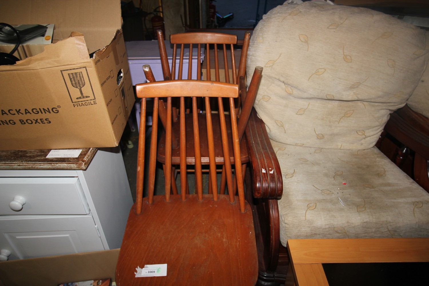Lot 1009: Set of three mid-century stick-back dining chairs