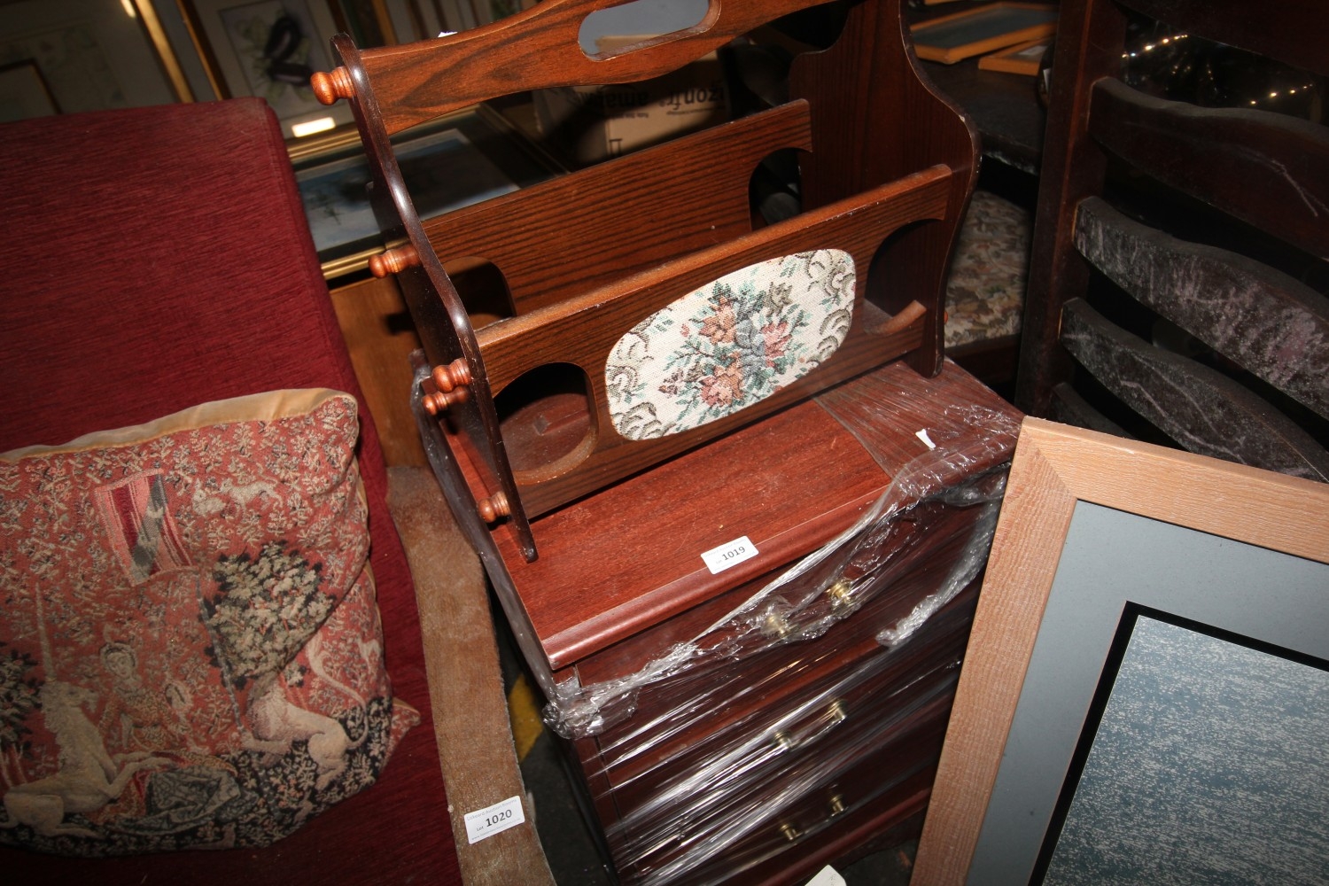 Lot 1019: a mahogany mag rack with a 3 drawer...