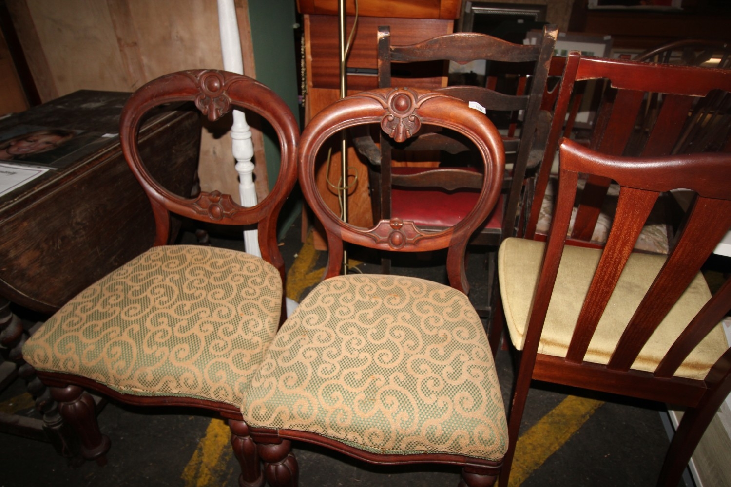 Lot 1031: A pair of antique Victorian walnut ballon-back carved...