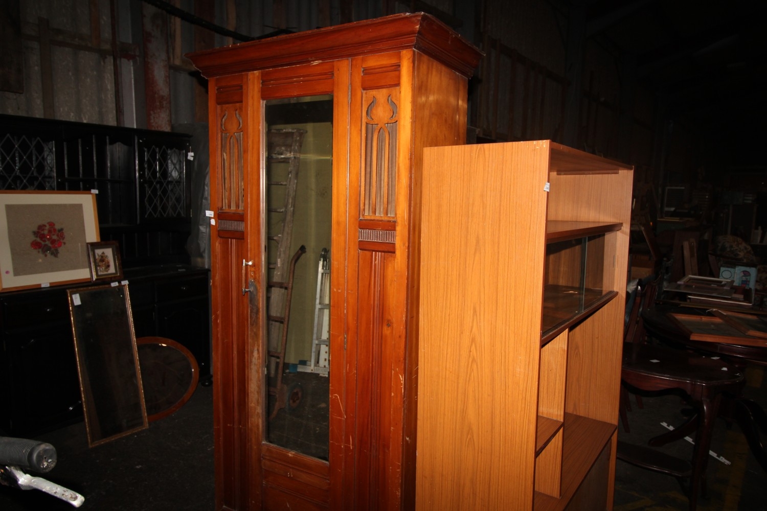 Lot 1049: vintage tall wooden wardrobe with mirror standing 191...