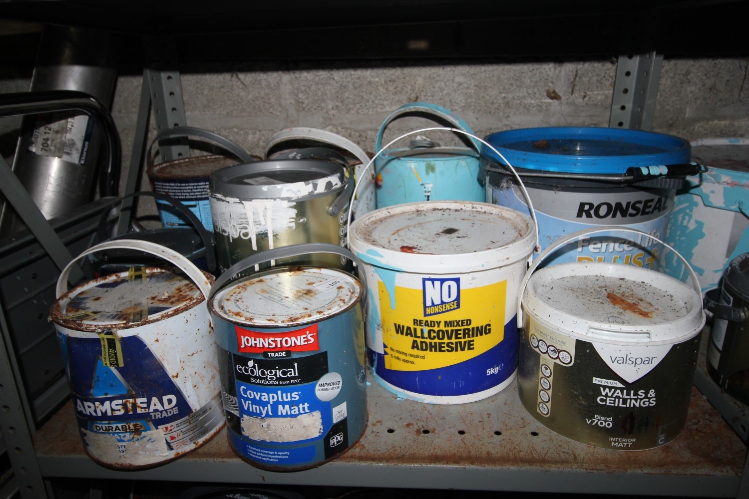 Large collection of full and part full household paints and adhesives inc Valspar, Ronseal, Johnstones, Dulux etc