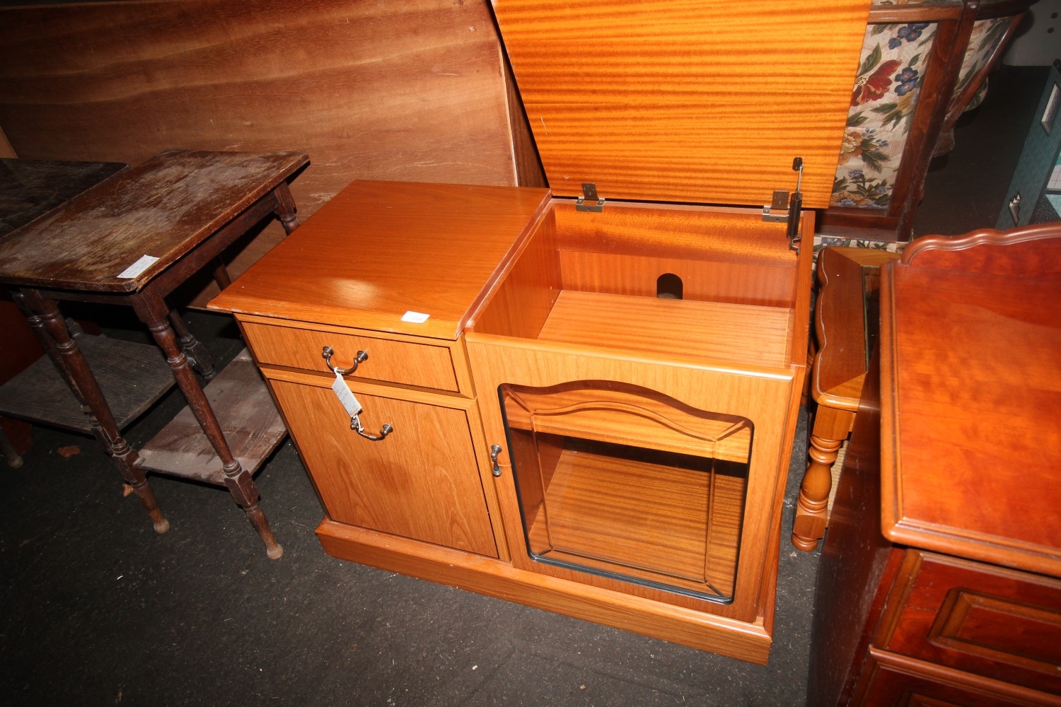 Lot 1058: old charm tv cabnit with glass frounted goors