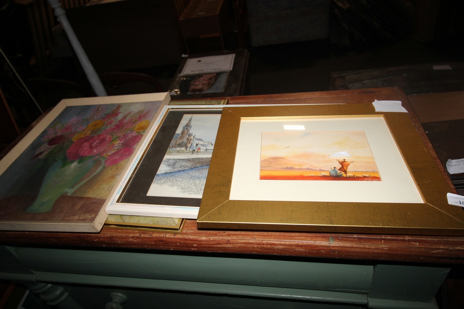 a selection of pictures inc a floral painting by m.k.lloyd etc