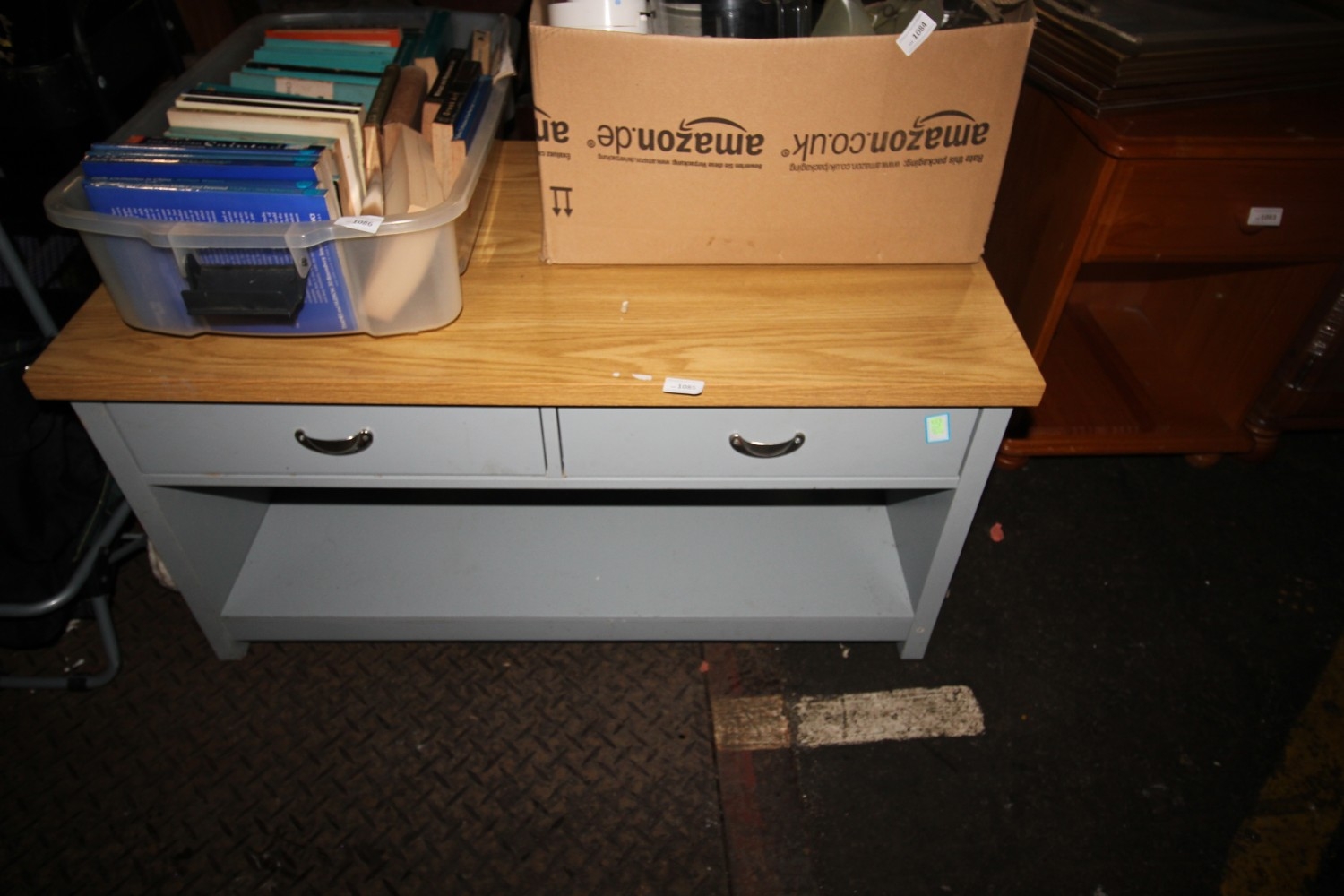 Lot 1085: grey painted and pine topped 2 drawer tv...
