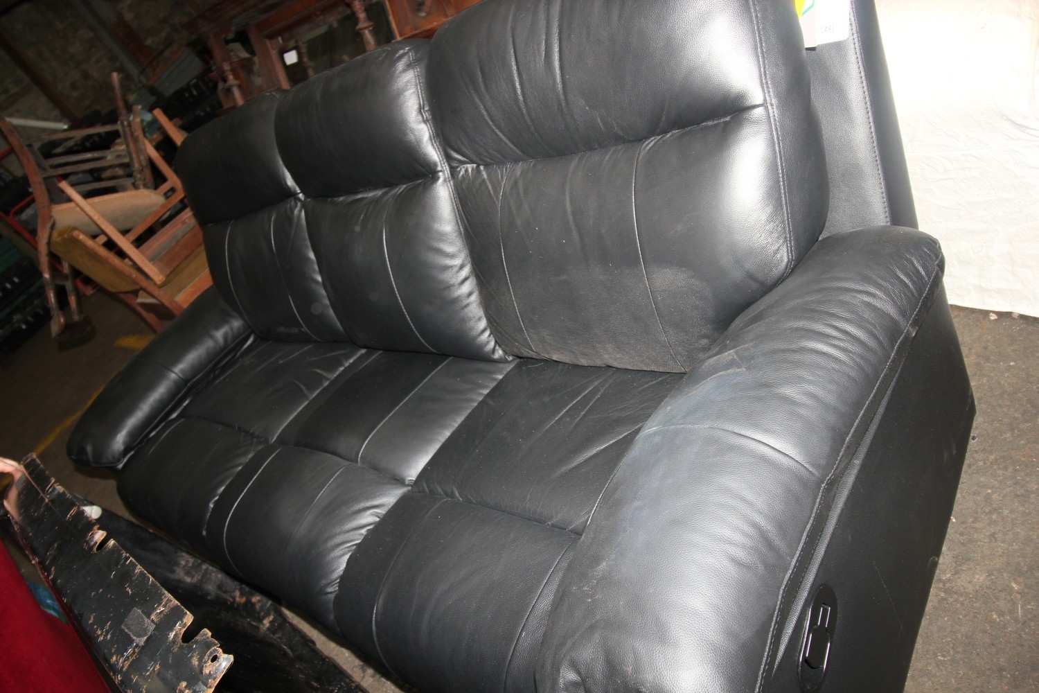 Lot 1158: black leather reclining sofa looks to be new...