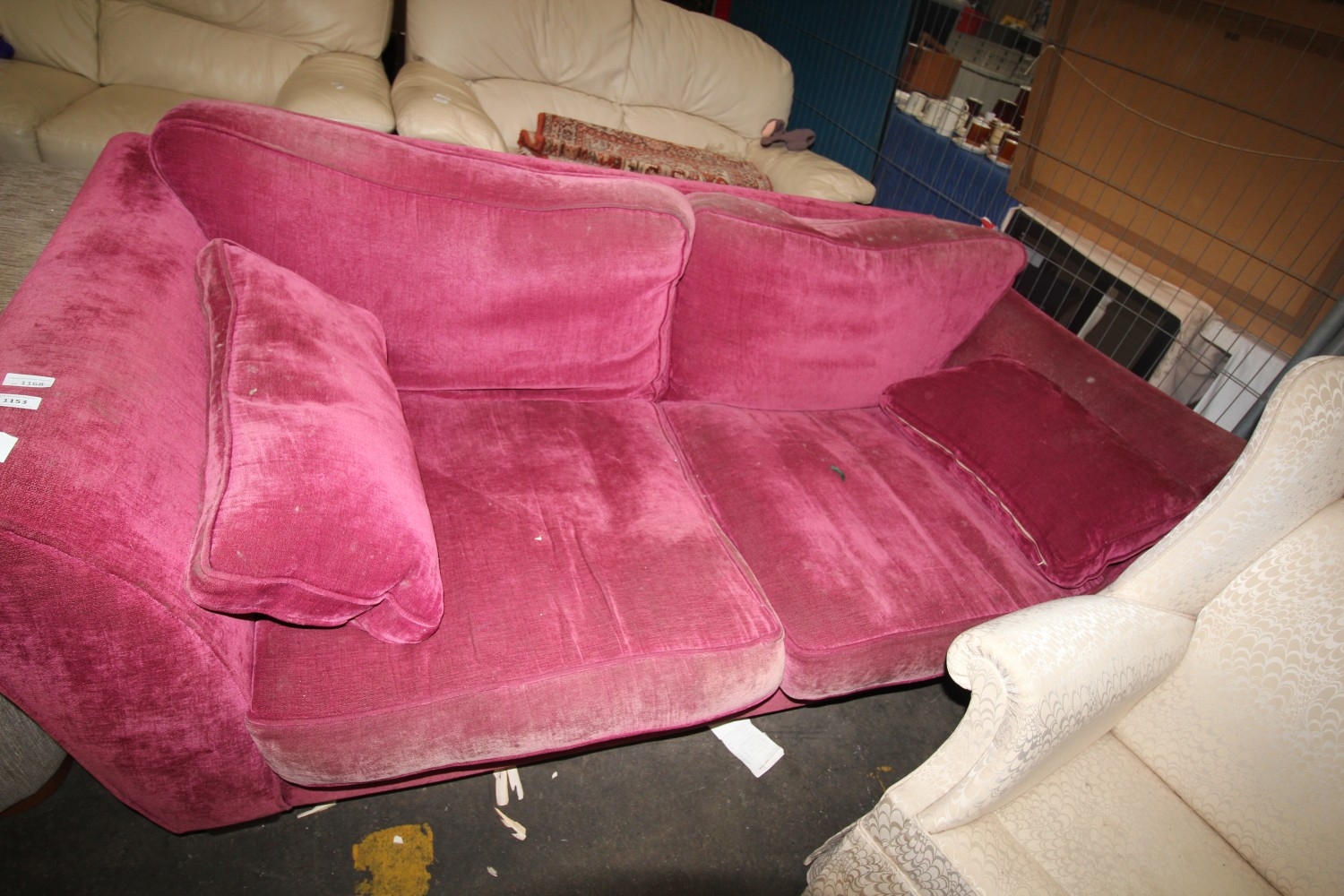 Lot 1168: pink 2 seater sofa with 2xside cushions