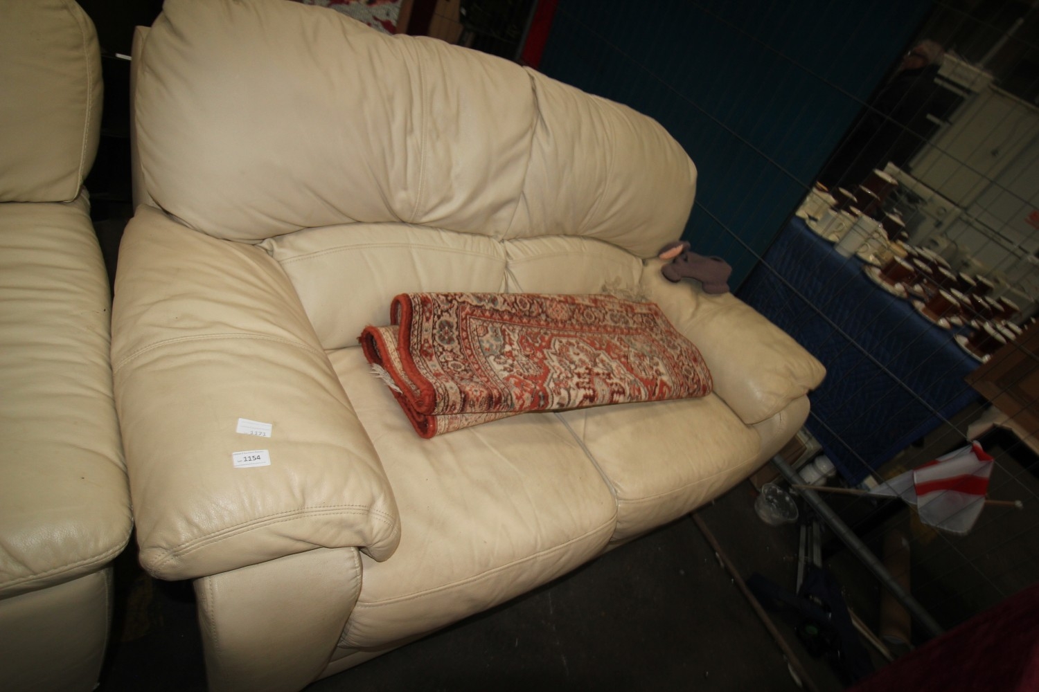 Lot 1171: cream faux leather 2 seater sofa