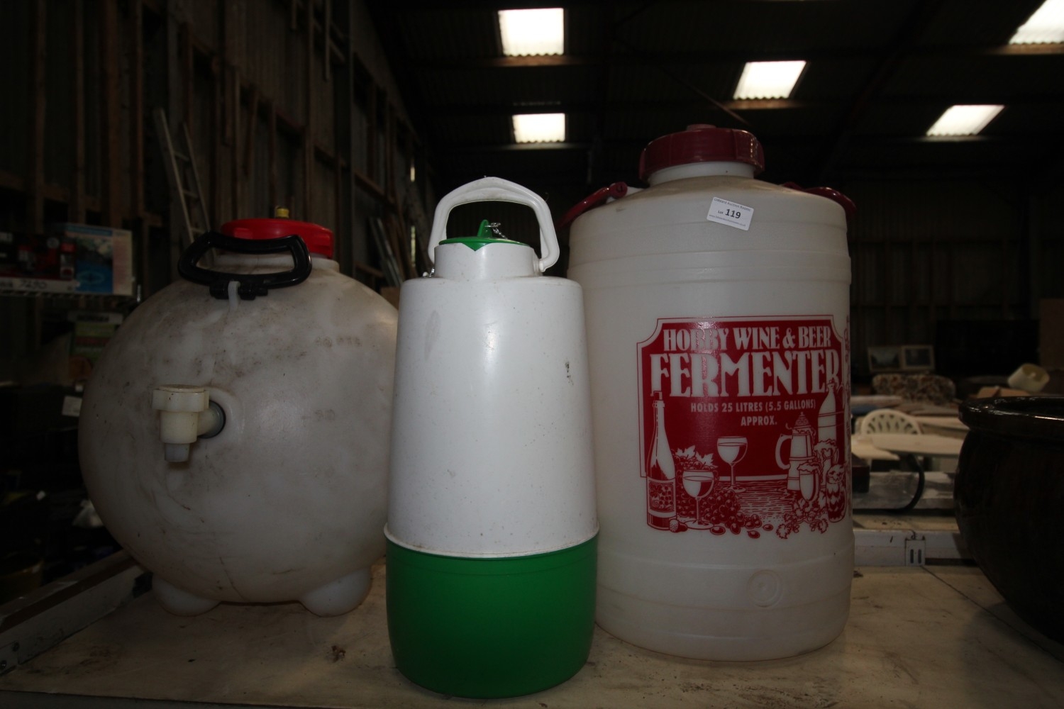 Lot 119: Two fermenting barrels and a drinks dispensing flask