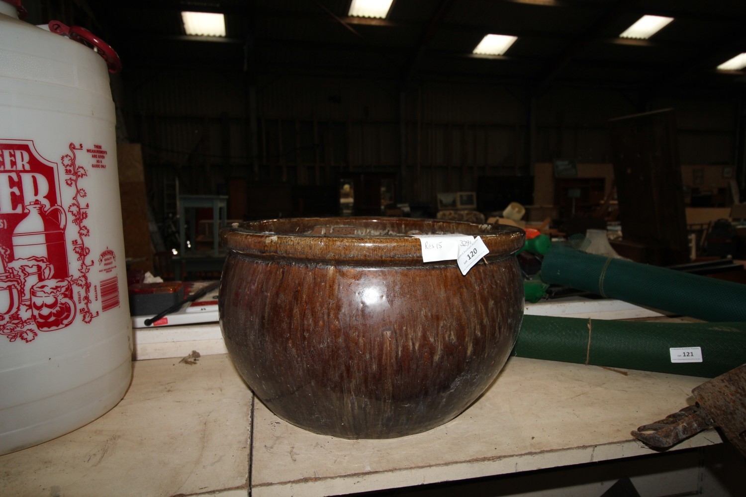 Lot 120: Large glazed terracotta planter measuring 39cm in diameter...
