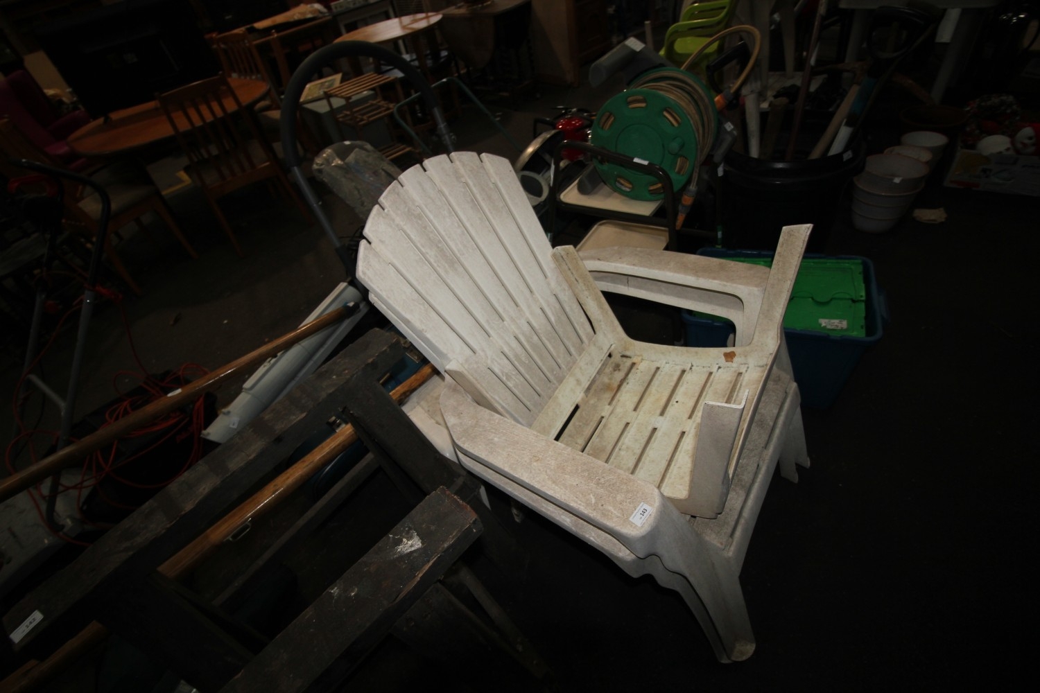 Lot 143: two large comfortable arch-backed upvc garden chairs with...