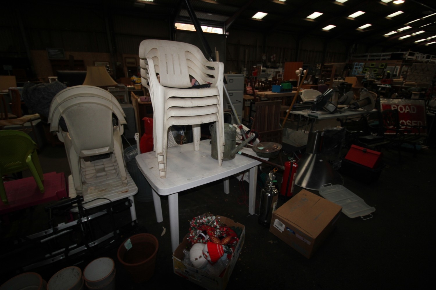 Lot 149: White upvc garden table with four matching chairs