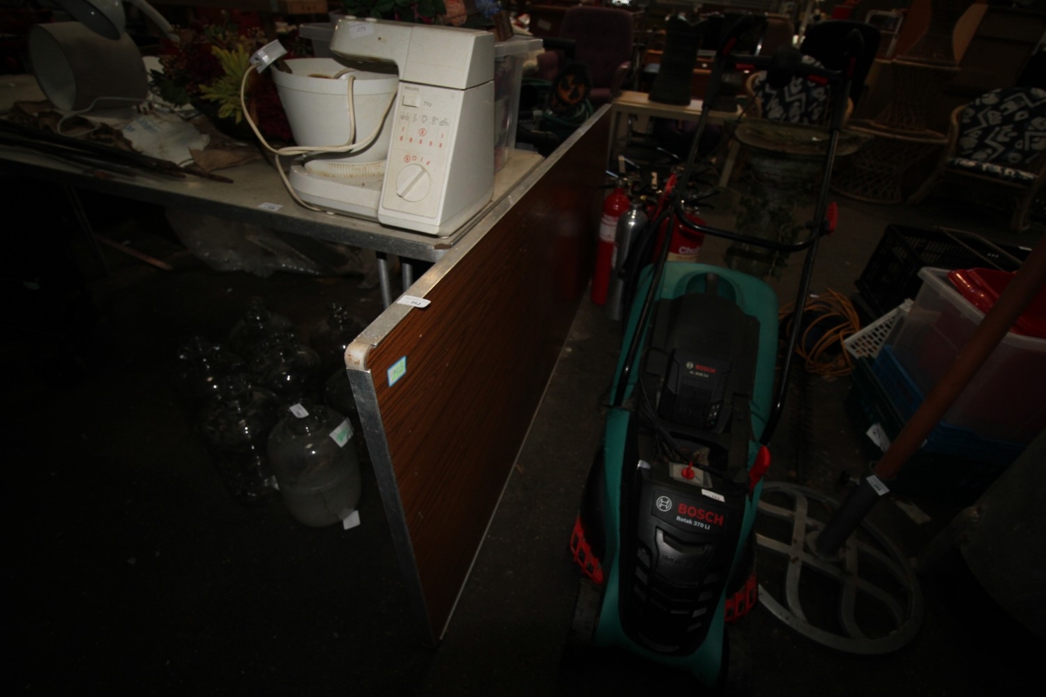 A sturdy aluminium framed folding leg school-dinner style table. Could also be used as a car boot table