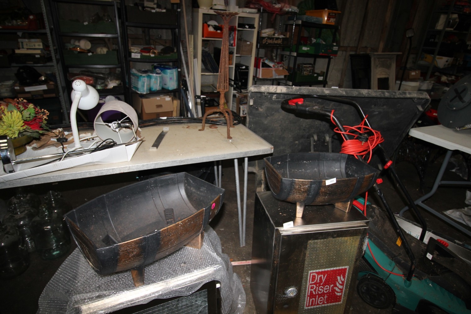Lot 184: A pair of matching abs plastic half-barrel planters...