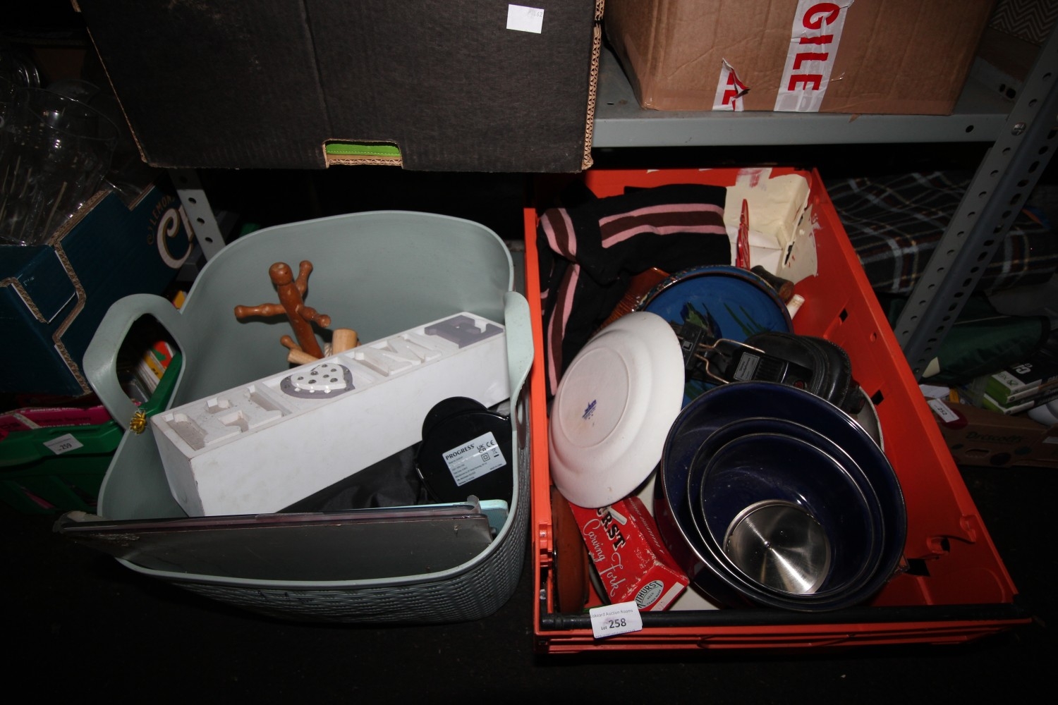 A large crate of collectible items inc Spode James Hawker and co Mayflower 1620 sherry bottle, local interest pottery, vintage Rank radio International Japanese made headphones etc