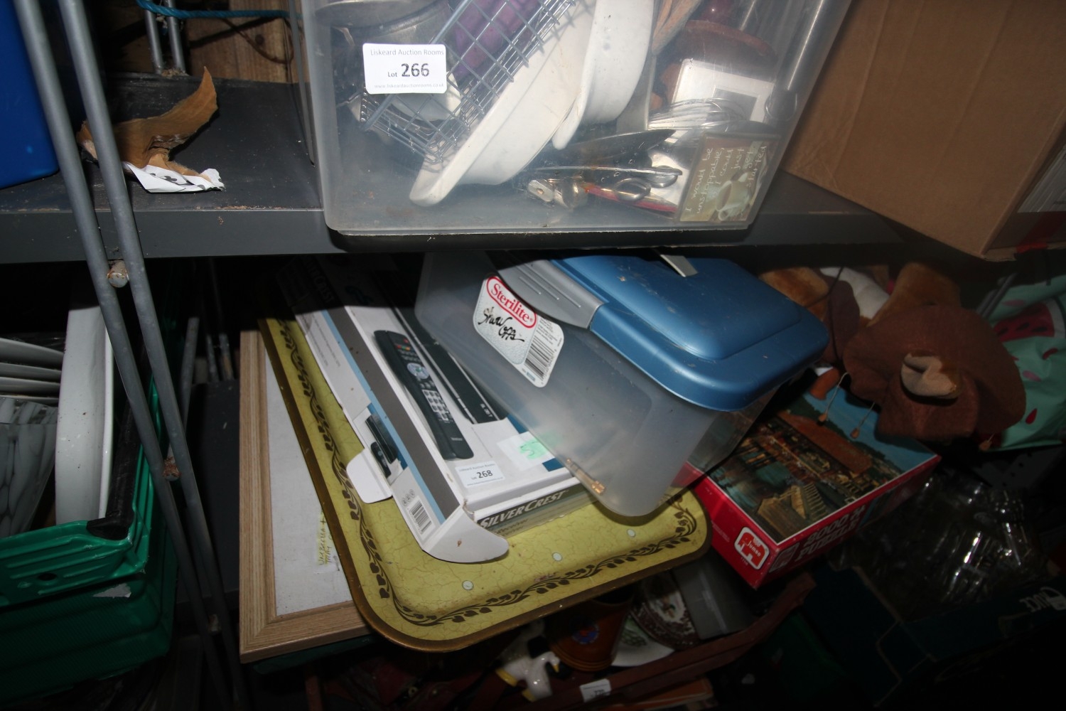 Lot 268: The silvercrest DVBT receiver, vintage serving tray etc