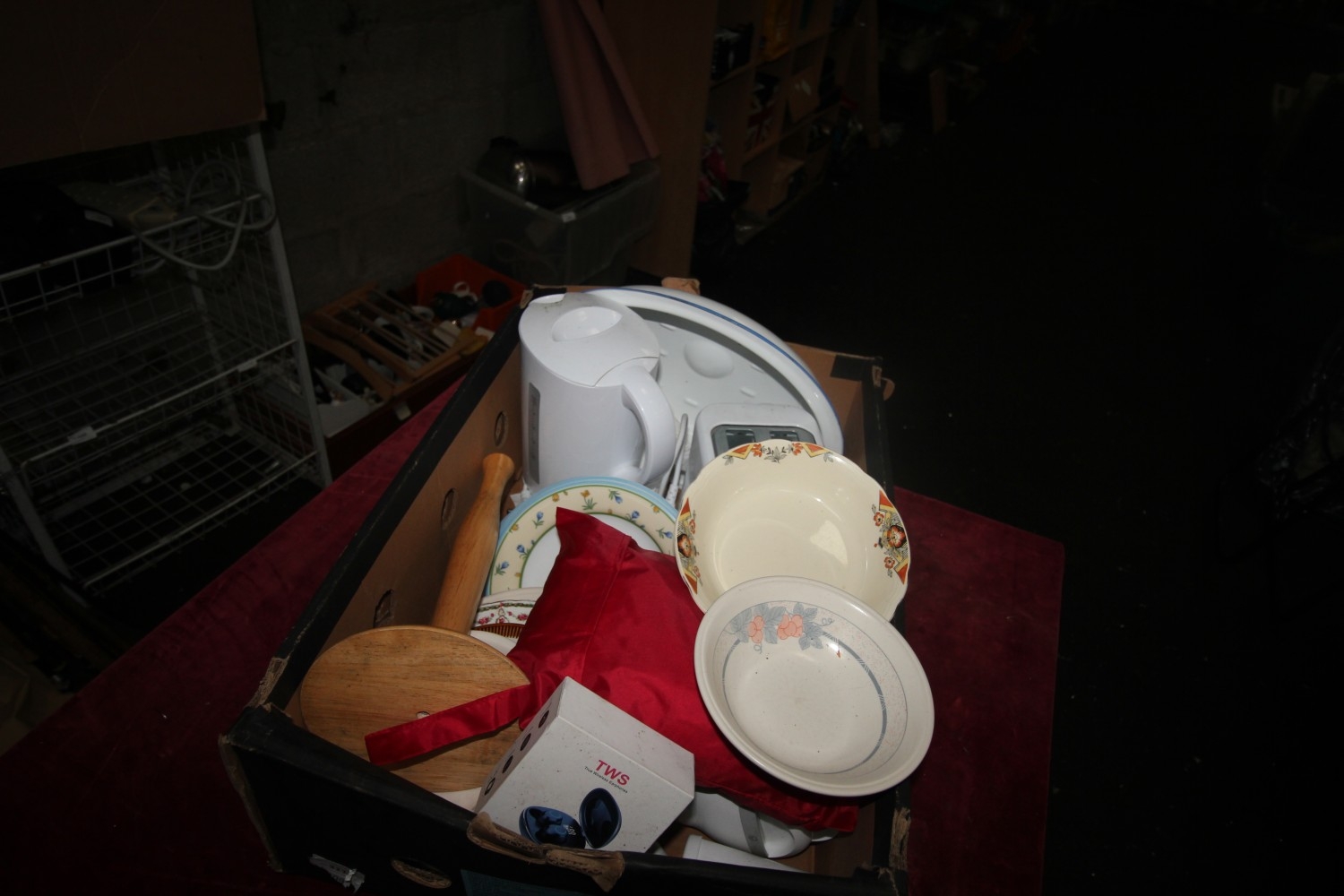 Lot 311: box of miscellaneous household items inc toaster, kettles,...