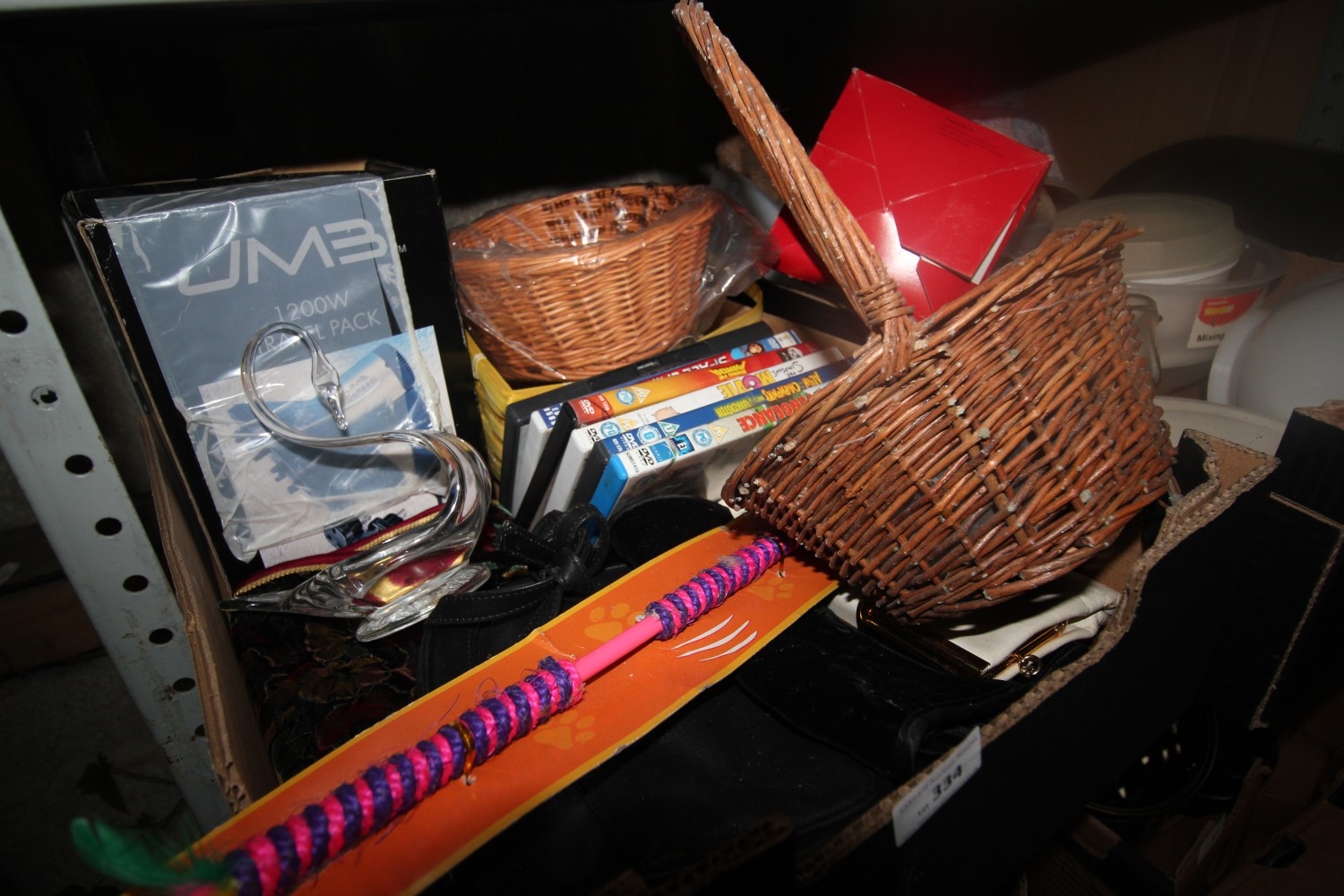Lot 334: mixed selection inc hair diffuser, handbags, dvds, hamper...