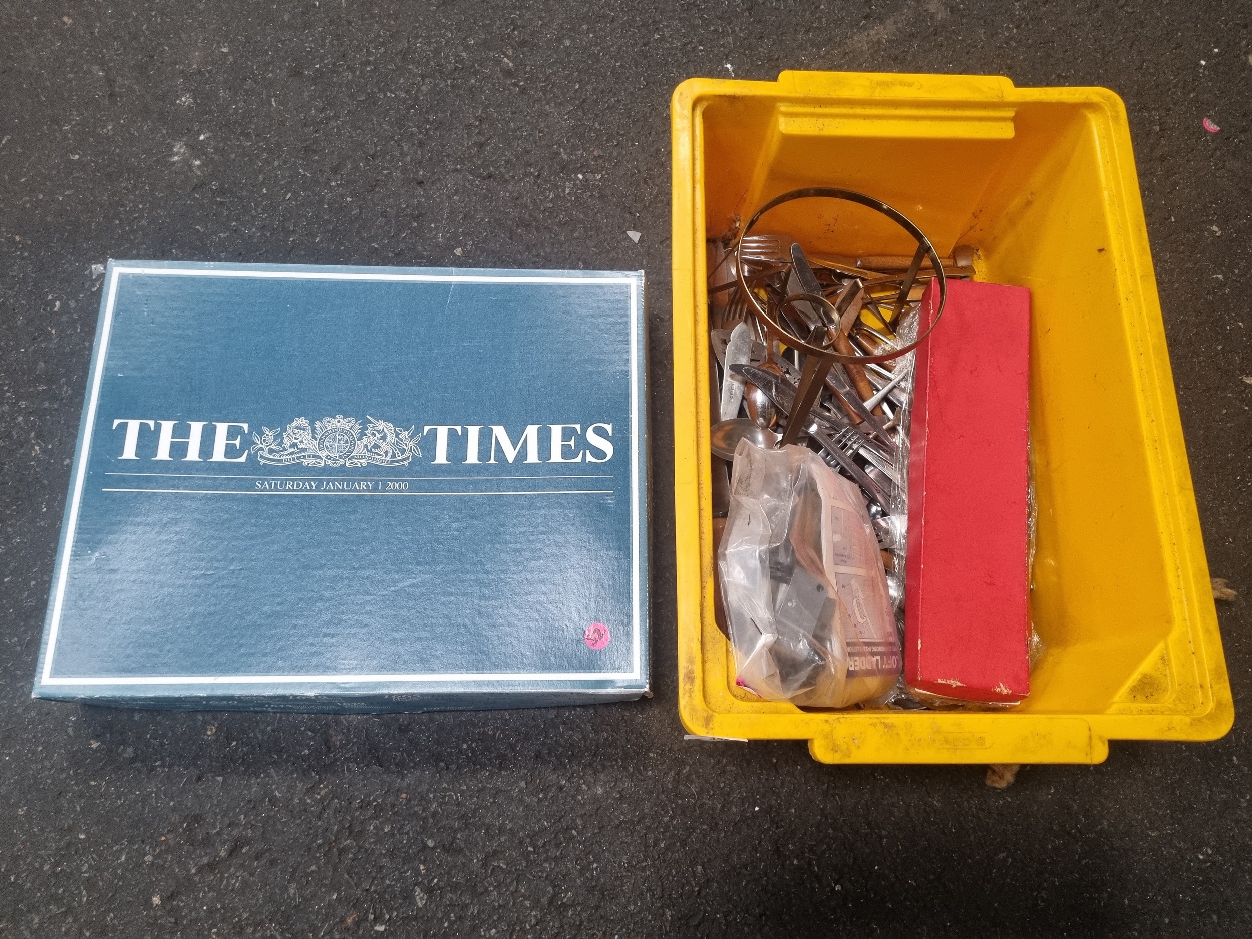 Collectible boxed set containing the millennium edition of the times newspaper inc certificate of authenticity plus a quantity of cutlery etc
