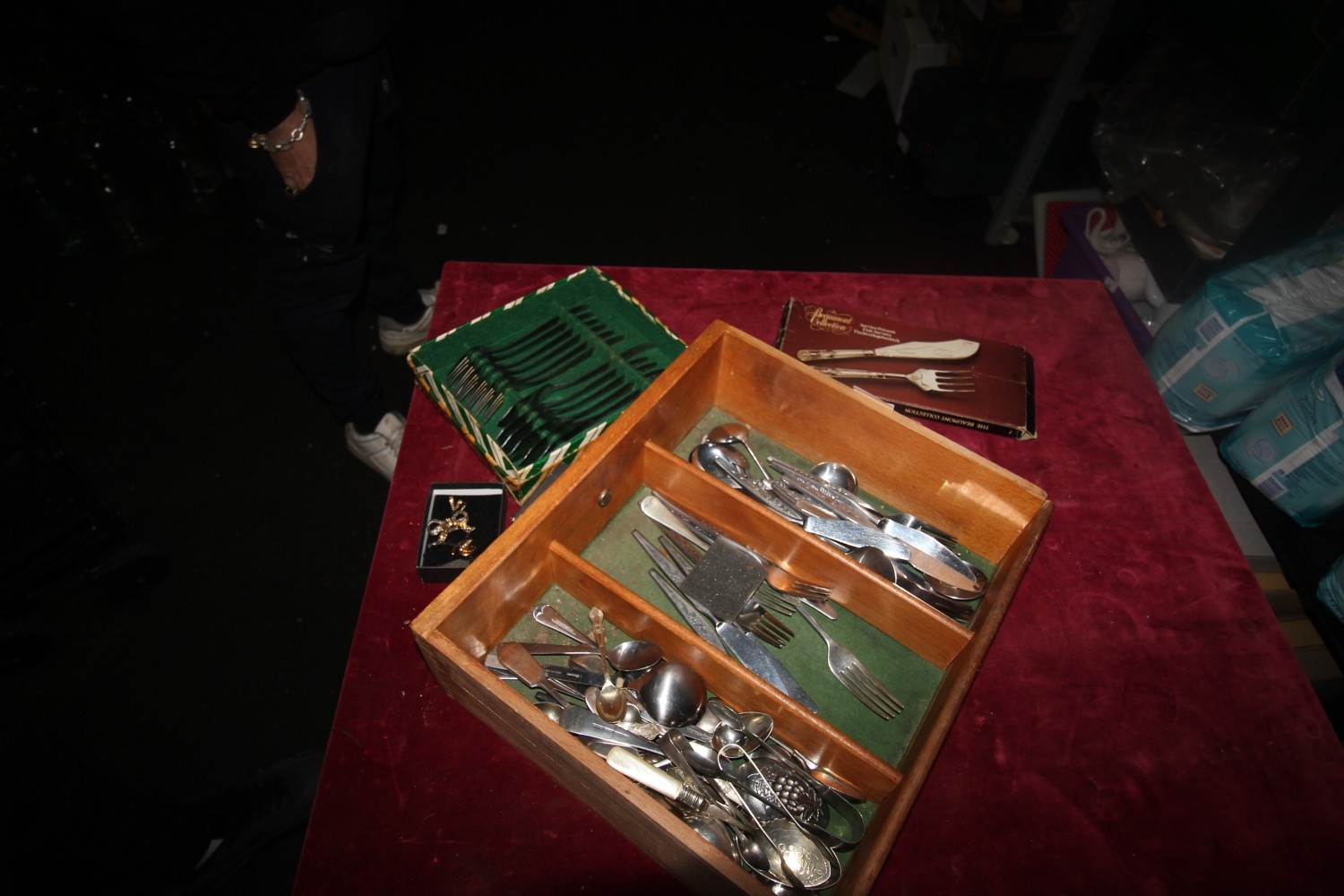 Lot 389: Drawer of vintage cutlery inc the silver-plated fish...
