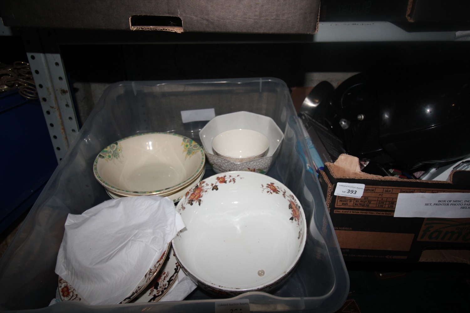 Large crate of vintage china bowls and plates inc. antique Victorian china, Burslem, Art Deco Staffordshire Knot bowl etc