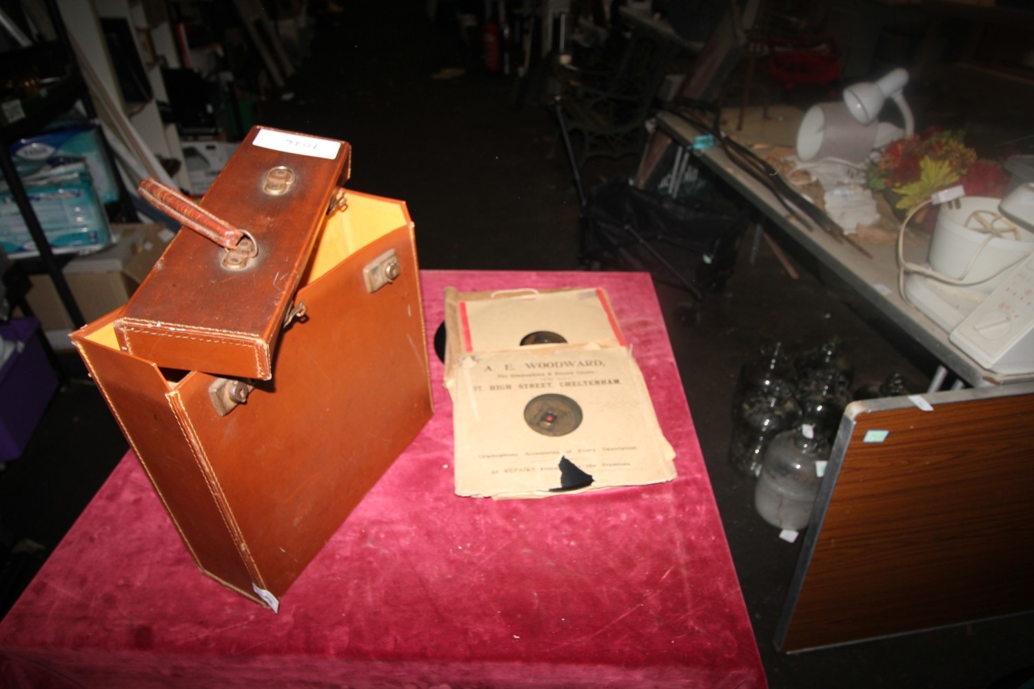 Lot 408: Collection of vintage gramophone records in a vintage...