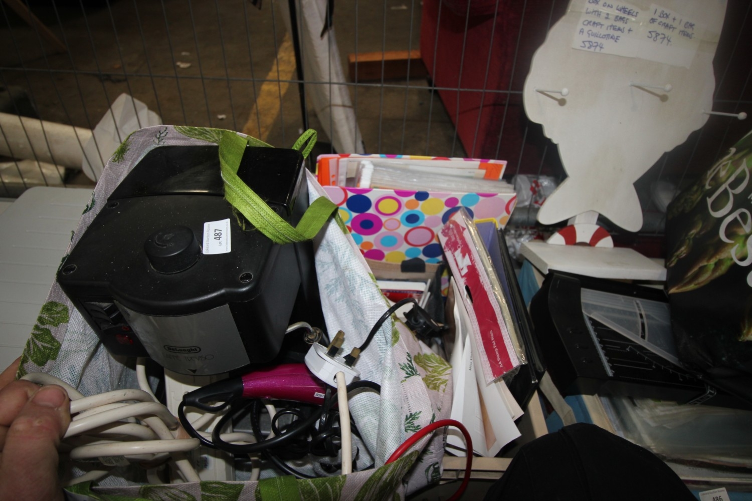 Lot 487: bag with 2 electrical lead extensions, 1 hair...