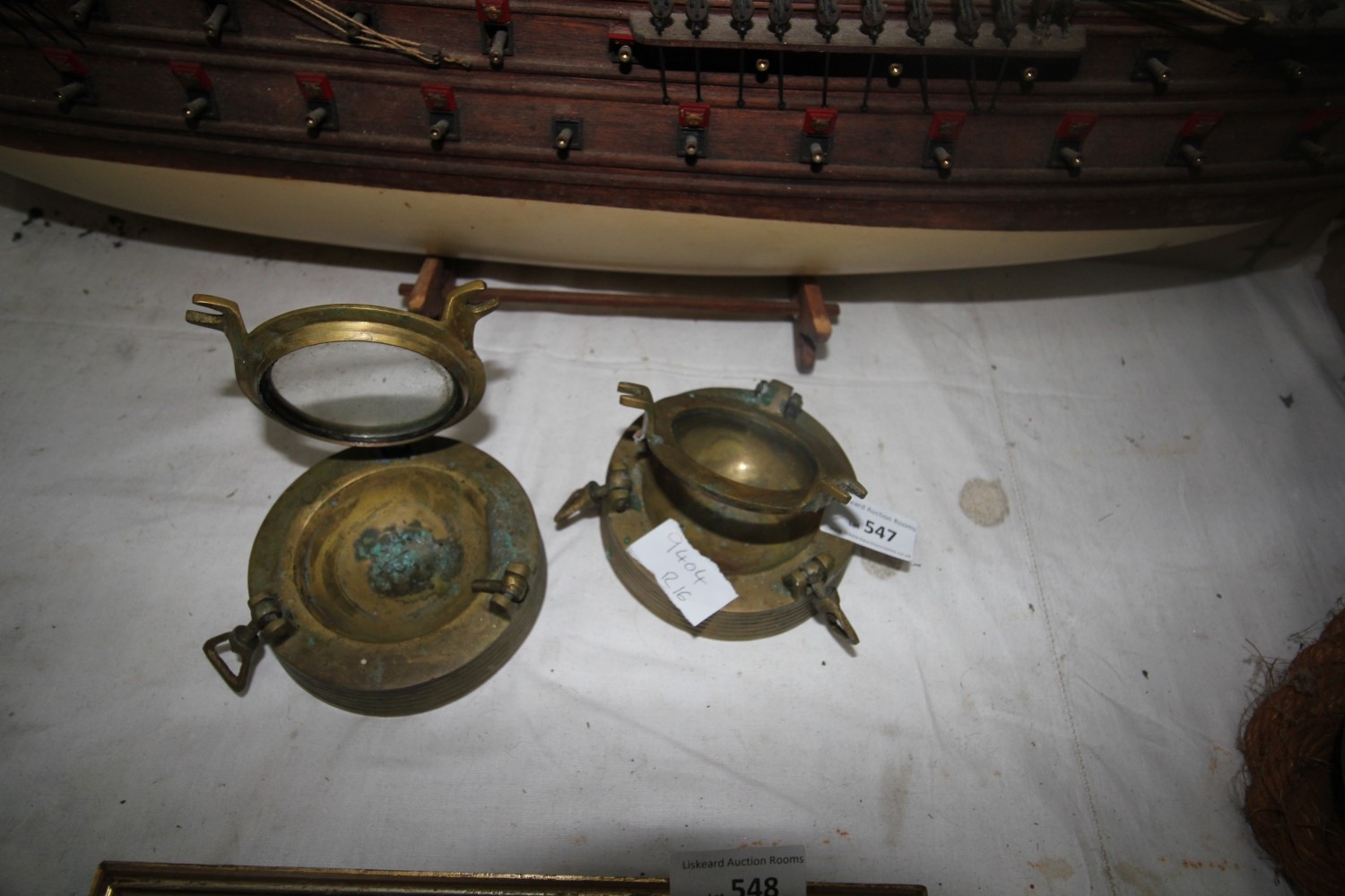 Lot 547: Two vintage brass submarine porthole window style ashtrays