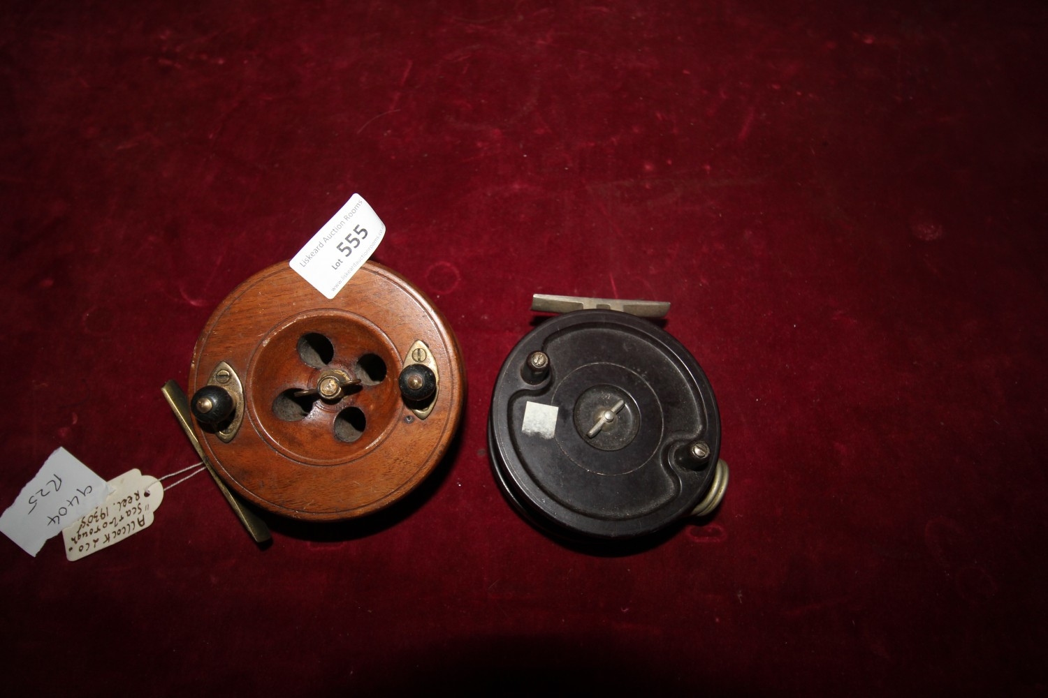 Allcock & Co. walnut and brass "Scarborough" reel circa 1930’s plus a Allcock Aerialite Bakelite fly reel