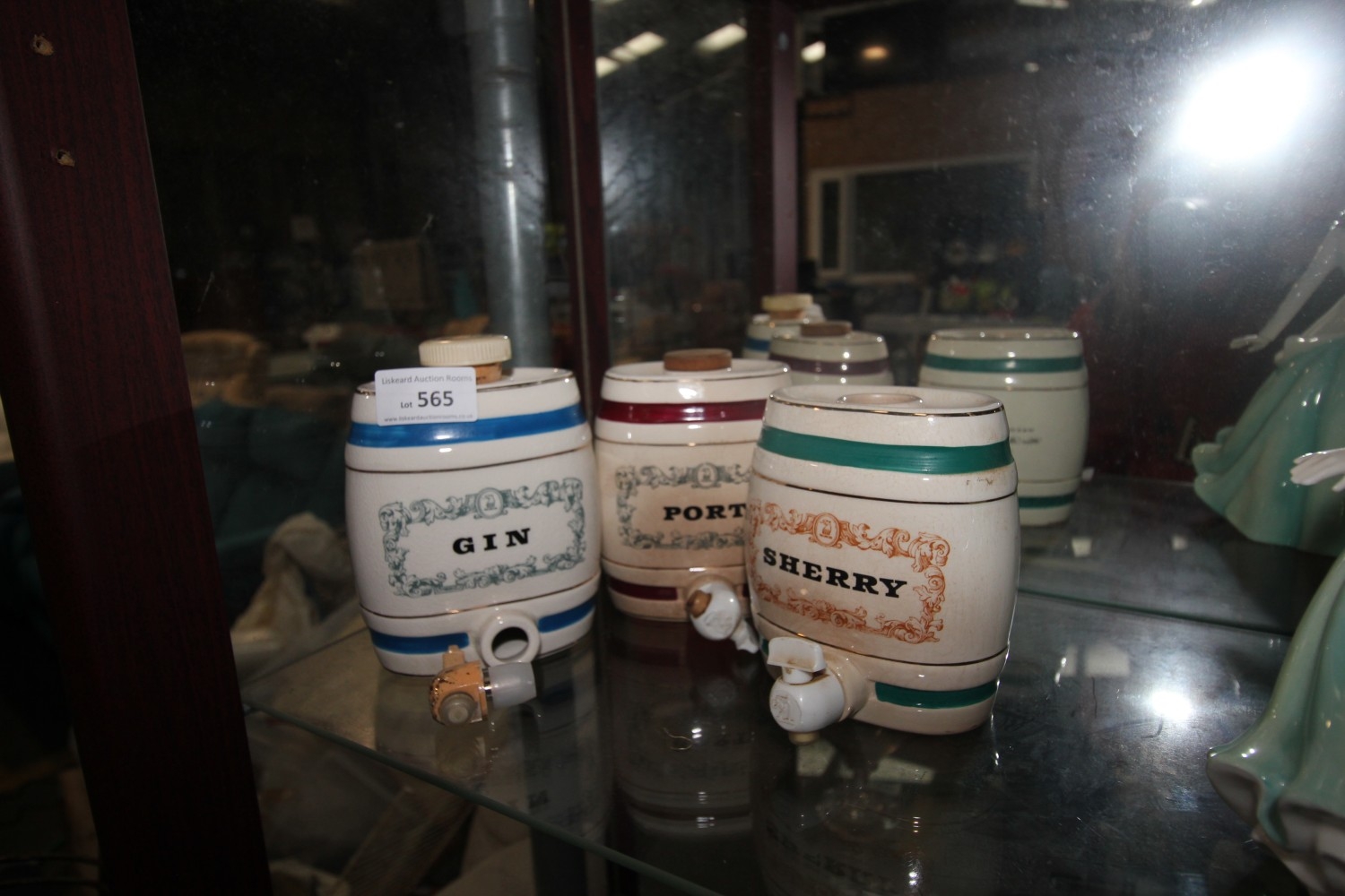 Lot 565: Set of three Royal Victoria Wade pottery barrels