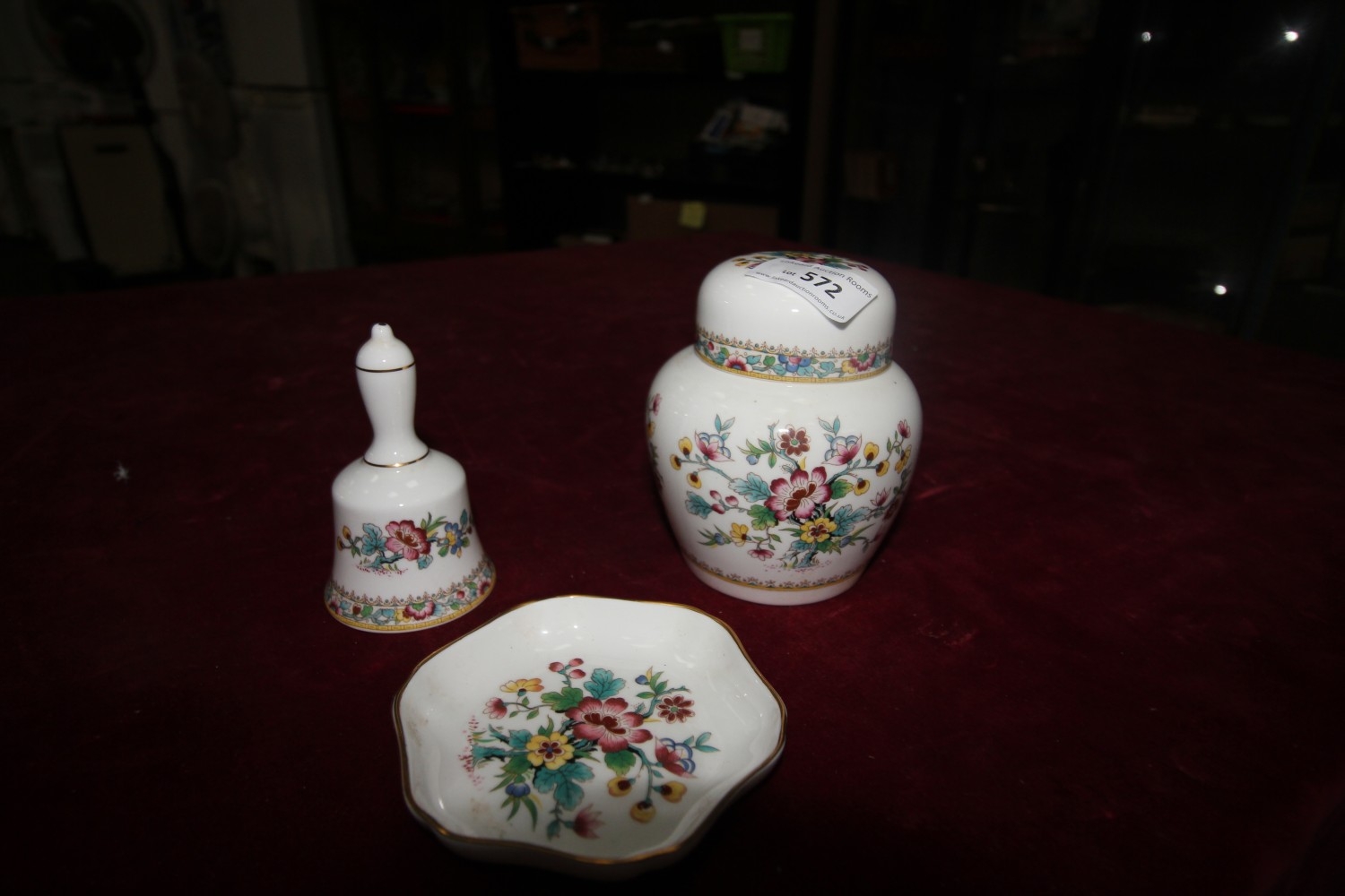 Selection of vintage Coalport "Ming Rose" collectible fine bone china inc. trinket dish, bell and lidded ginger jar