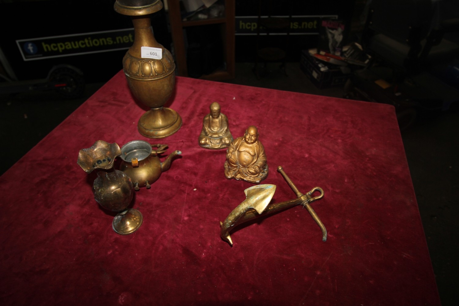 Lot 601: Selection of collectible brass items inc Buddha, amphora...