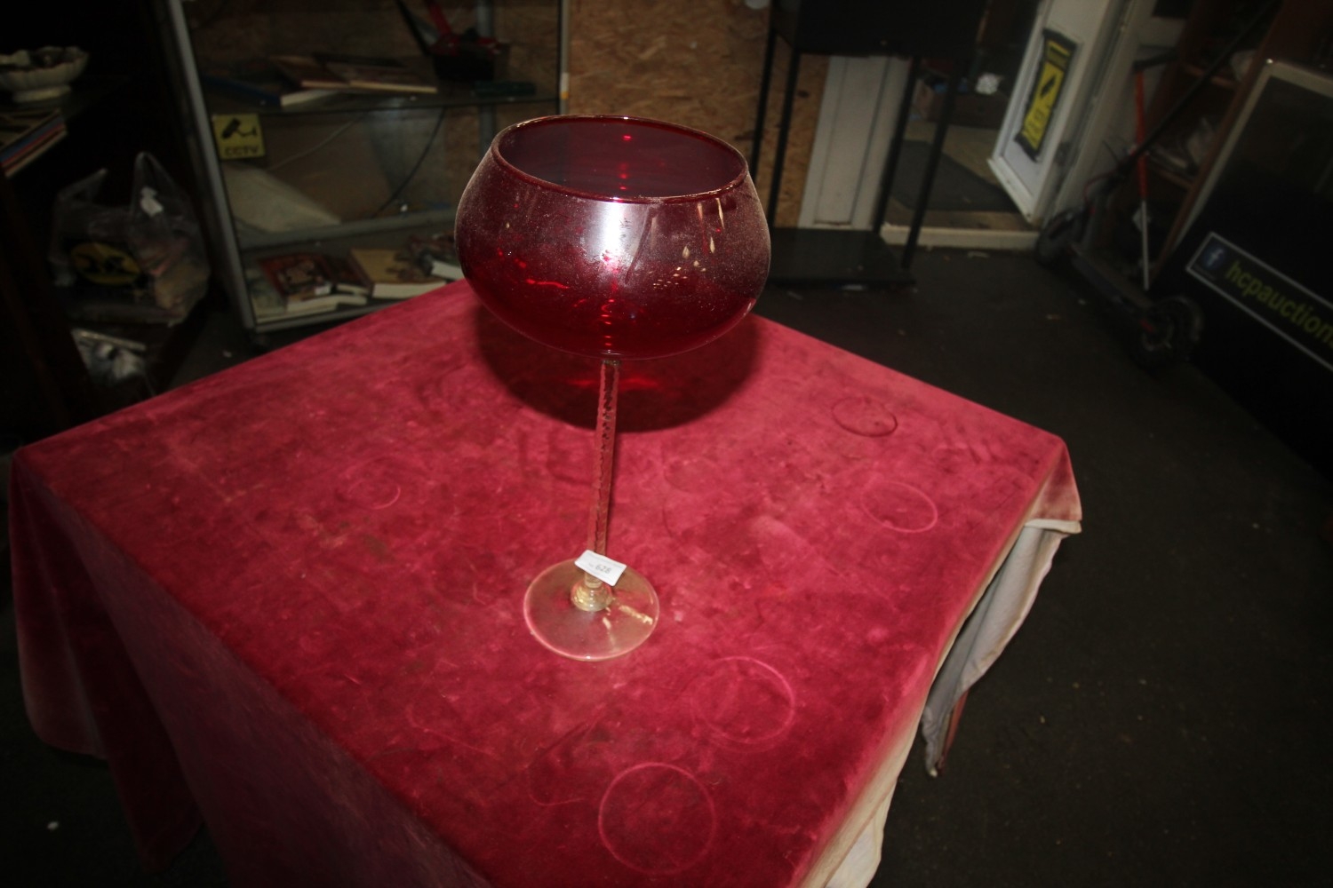 Lot 628: Oversized Italian Venetian Empoli ruby red twisted-stem wine...