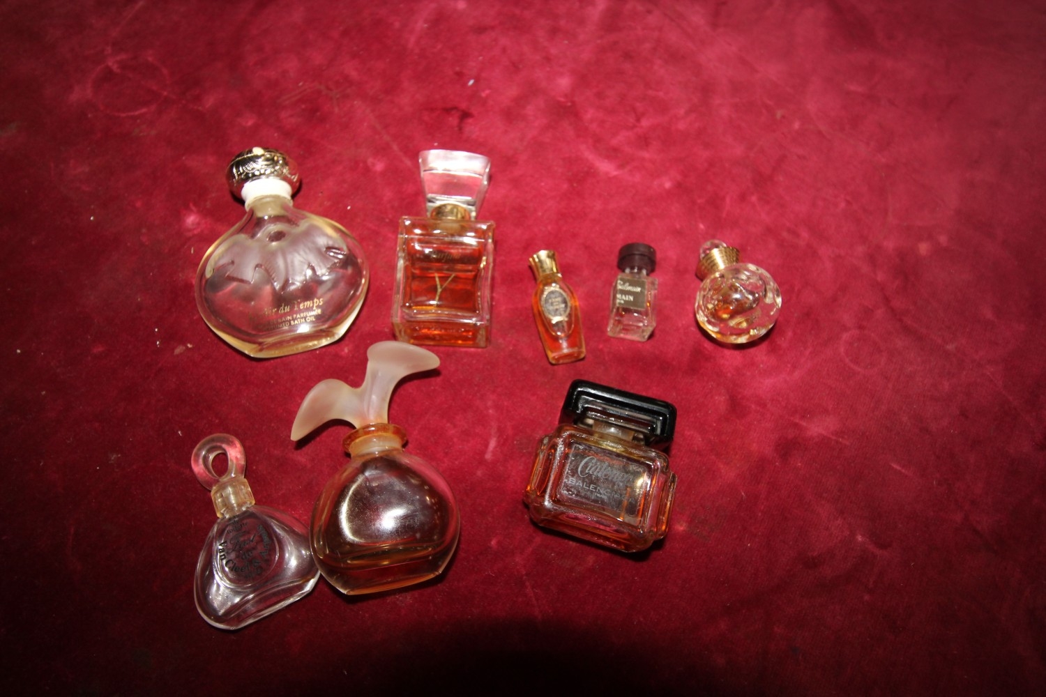 selection of vintage miniature perfumes inc lalique, miss balmain and more