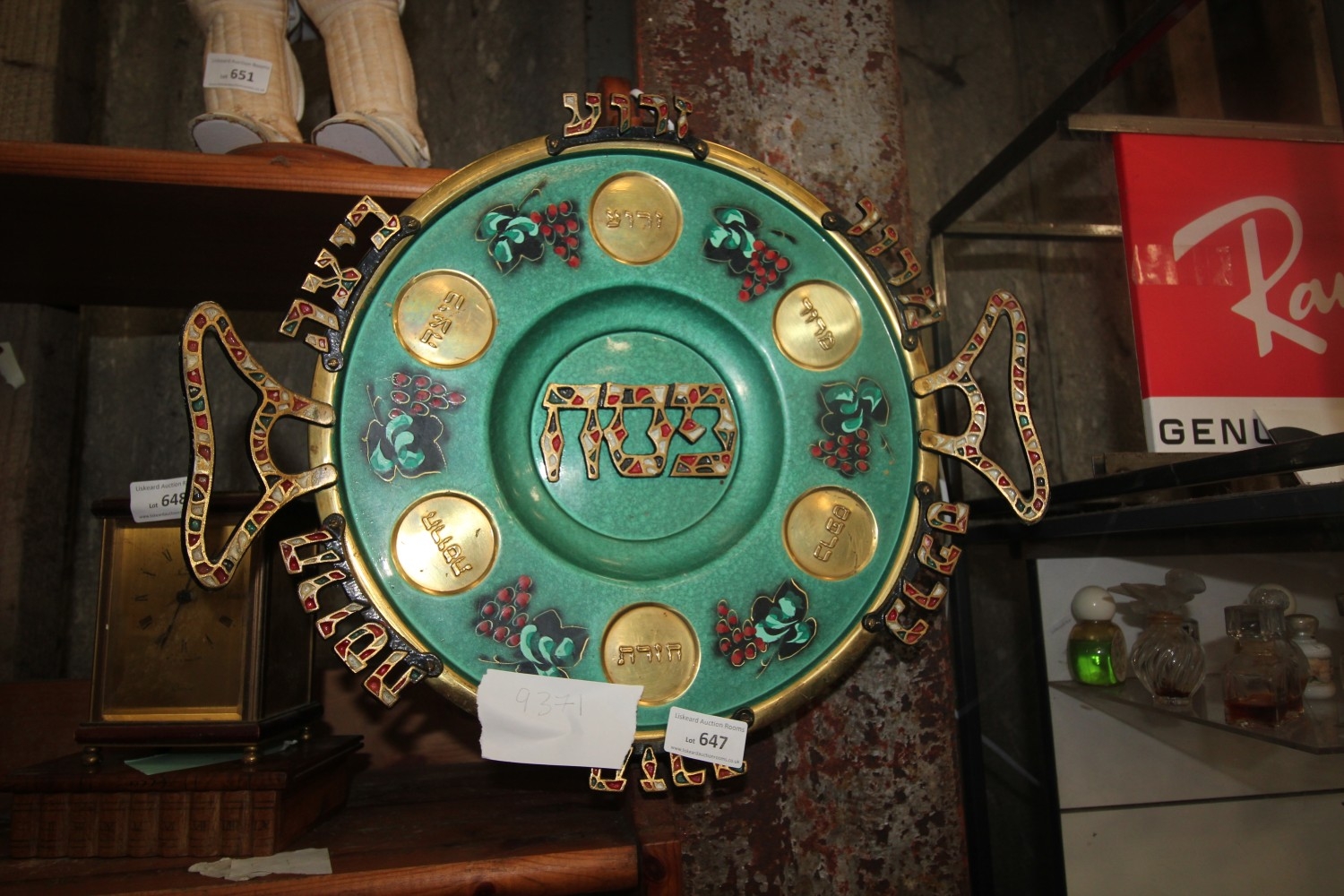 Lot 647: vintage enamelled metal and brass passover seder plate