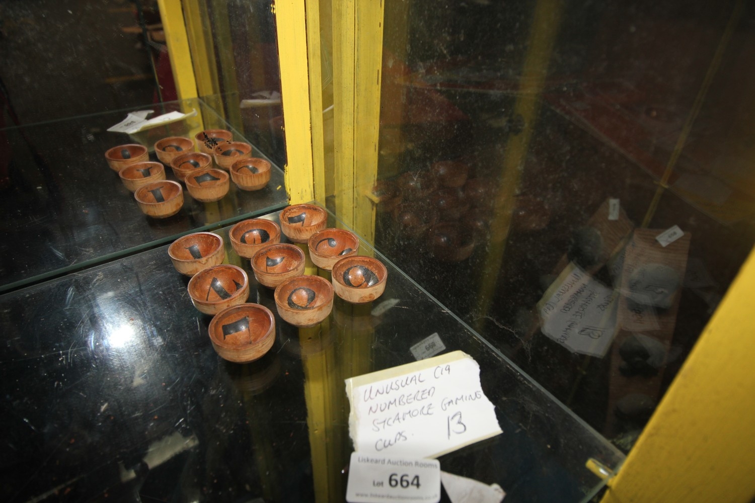 Lot 664: unusual numbered sycamore gaming cups
