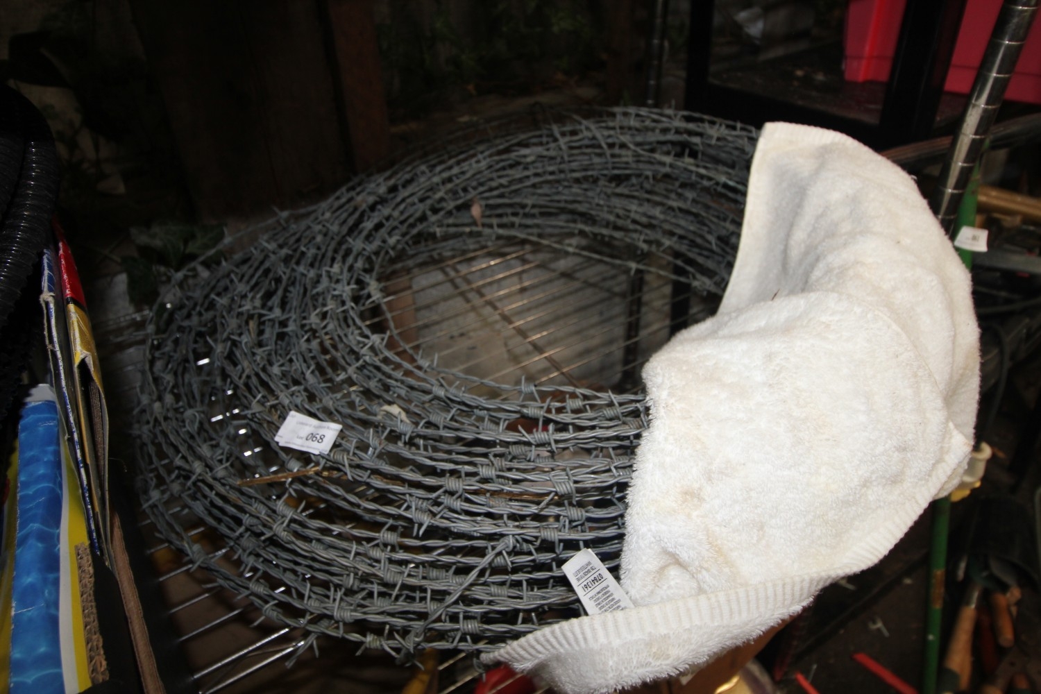 Lot 68: Approx 50m of galvanised barbed wire in good...