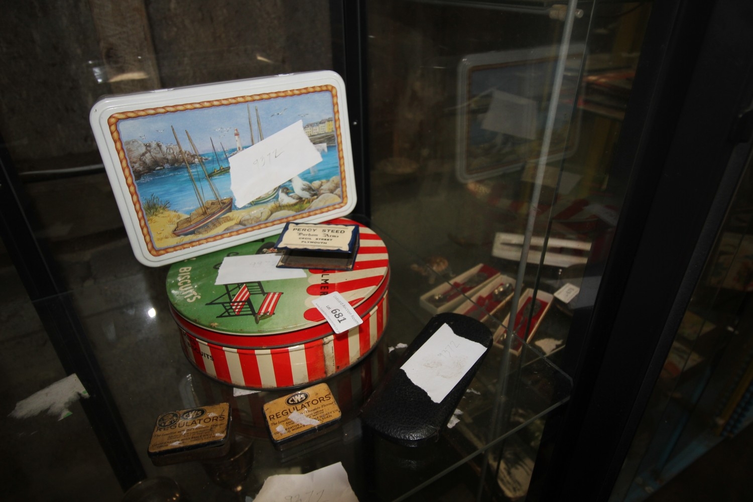 Lot 681: selection of vintage tins and glasses case