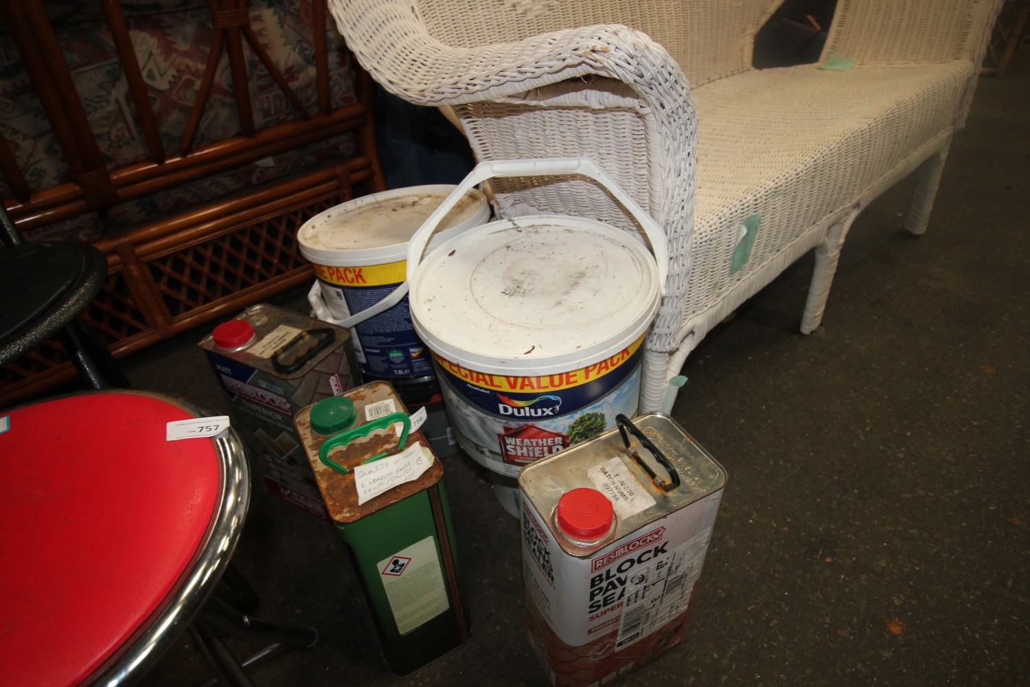 Lot 756: quantity of full and nearley full paints/stains/sealers ect