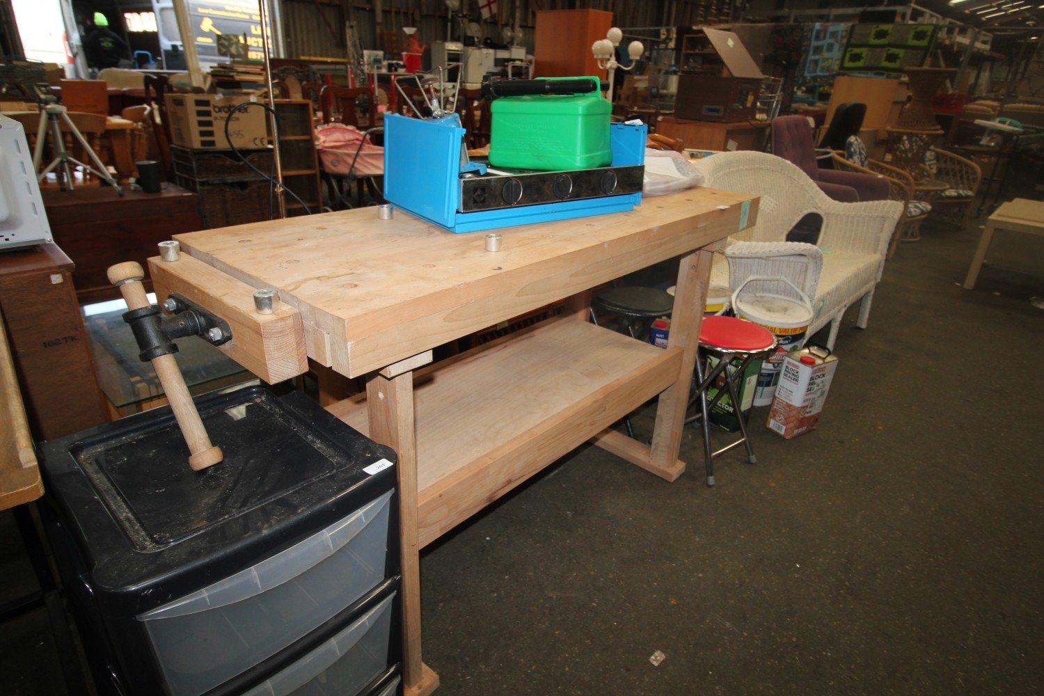 almost new very high quality solid beech craftmans table with built in vises one each end