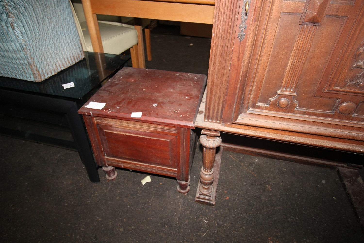 Lot 868: Vintage carved oak commode with turned legs and...