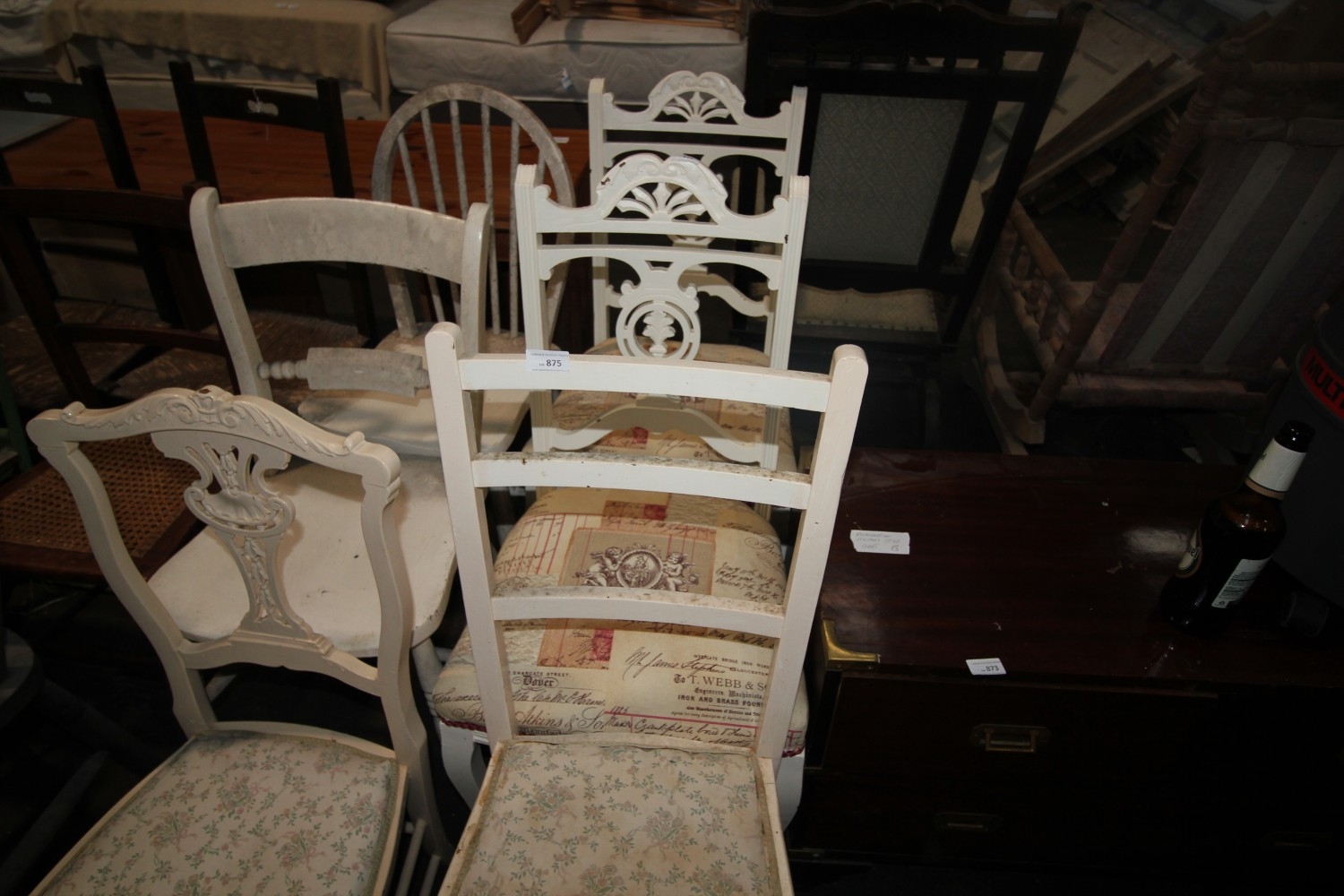 Lot 875: Selection of vintage white-painted dining and bedroom chairs....